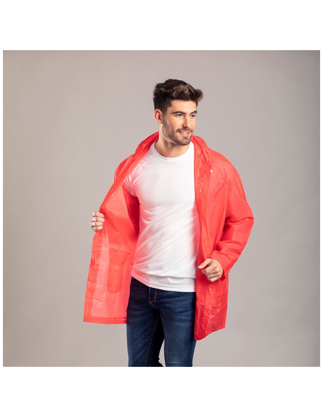 Impermeable en resistente EVA de acabado termosellado en variada gama de colores. Capucha dcon cintas de ajuste, cierre principal de corchete y con bolsillos laterales de solapa. Talla única para adulto.