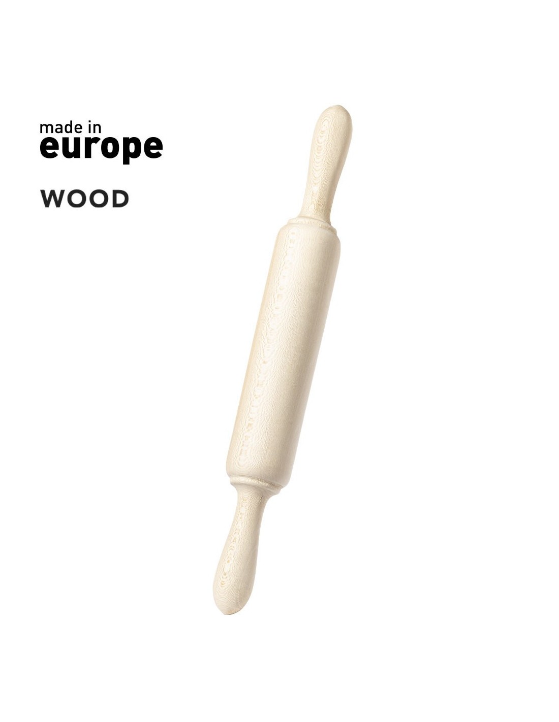Rodillo de cocina de fabricación europea y hecho en madera natural, con cómodos mangos en los extremos. Incluye certificación PEFC, contribuyendo así a la preservación de los bosques y la biodiversidad forestal.