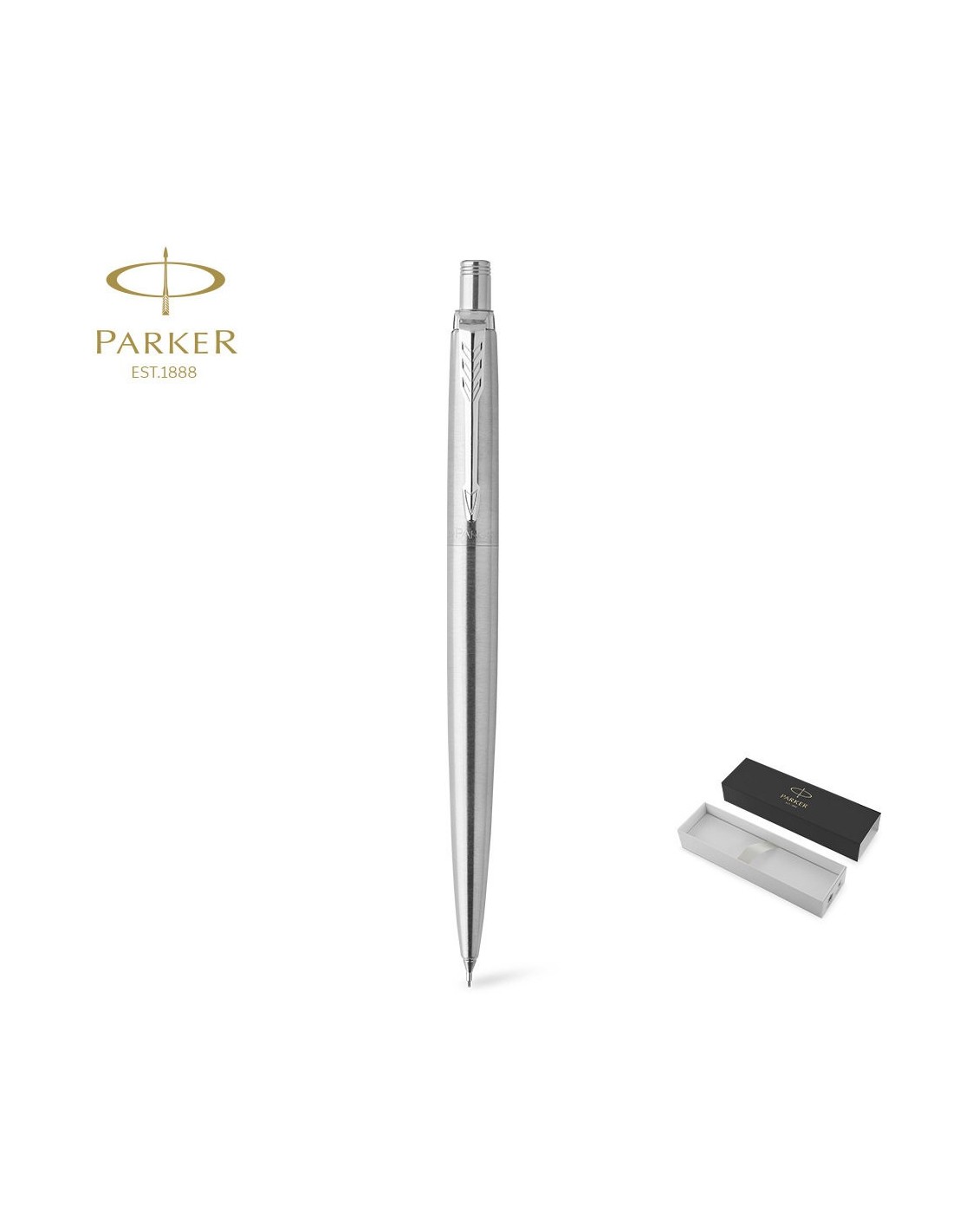 Portaminas Parker Jotter Core, un clásico fabricado en acero inox, con adornos brillantes y el clip con la forma icónica en punta de flecha de la marca. De mecanismo pulsador, con minas de 0,5mm y goma de borrar. Presentación en estuche individual negro con logotipo Parker. Con la fluidez, precisión e intensidad homogéneas propias de PARKER Jotter, un referente en cuanto a estilo desde hace más de 60 años. Con un diseño novedoso y simplificado, reflejando su legado en cada detalle.