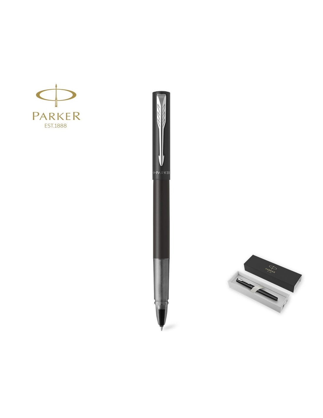 Roller Parker Vector XL, fabricado en acero inox pulido, resaltado con un adorno cromado y el inconfundible clip con la forma icónica en punta de flecha de la marca en la capucha. En tinta negra y presentado en estuche individual negro con logotipo Parker. Escritura limpia y homogénea, sin saltos, y de gran gran fluidez e intensidad. Su práctica forma cilíndrica y su resistente plumín fino de acero inoxidable permiten escribir con gran comodidad y precisión, convirtiendo al Vector XL en un instrumento de escritura tan accesible como versátil.