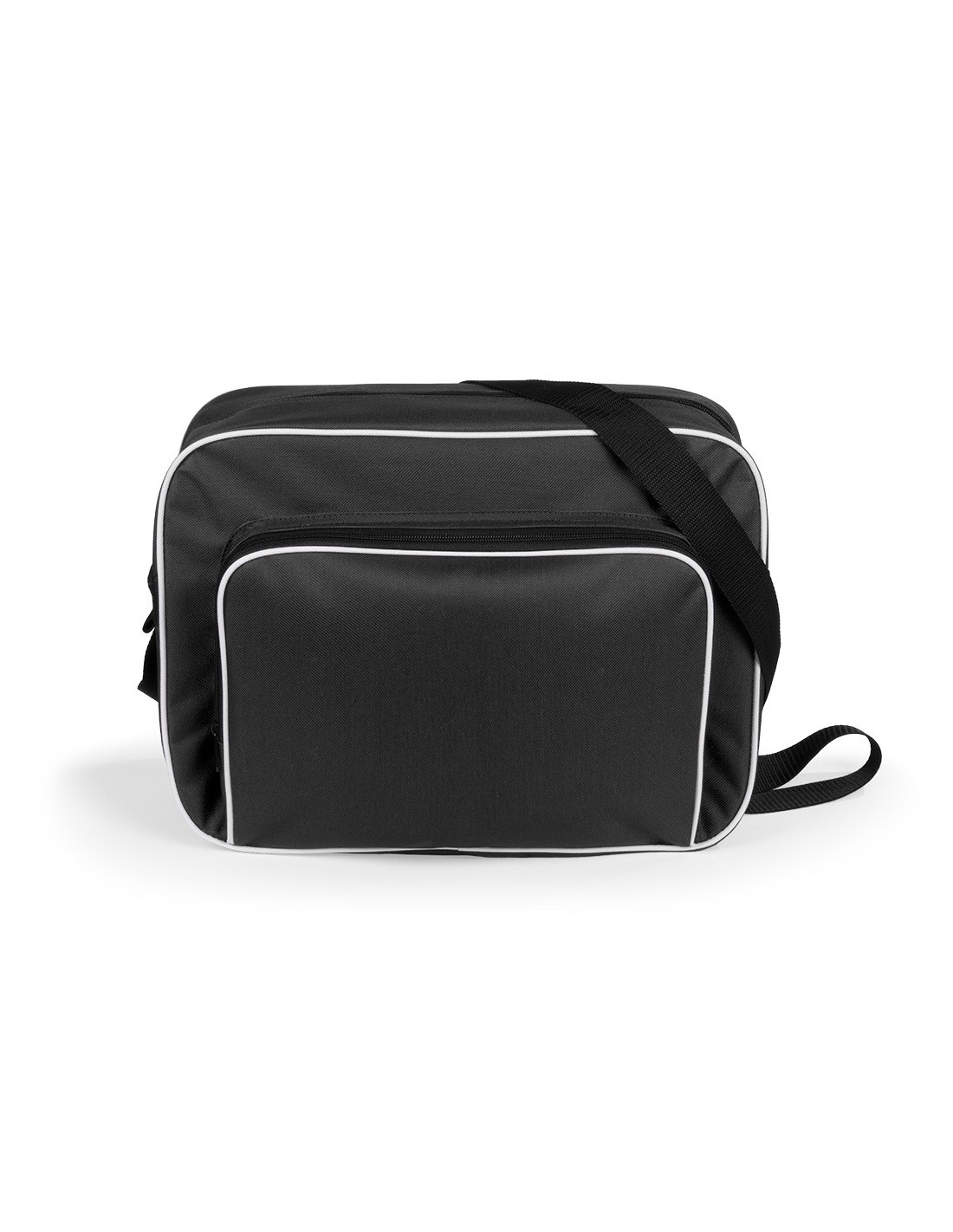 Bolso multiusos en resistente poliéster 600D de desenfadado diseño bicolor en amplia gama de colores, con ribetes de refuerzo en color blanco. Compartimento principal y bolsillo exterior con cierre de cremallera en color negro. Con resistente cinta bandol