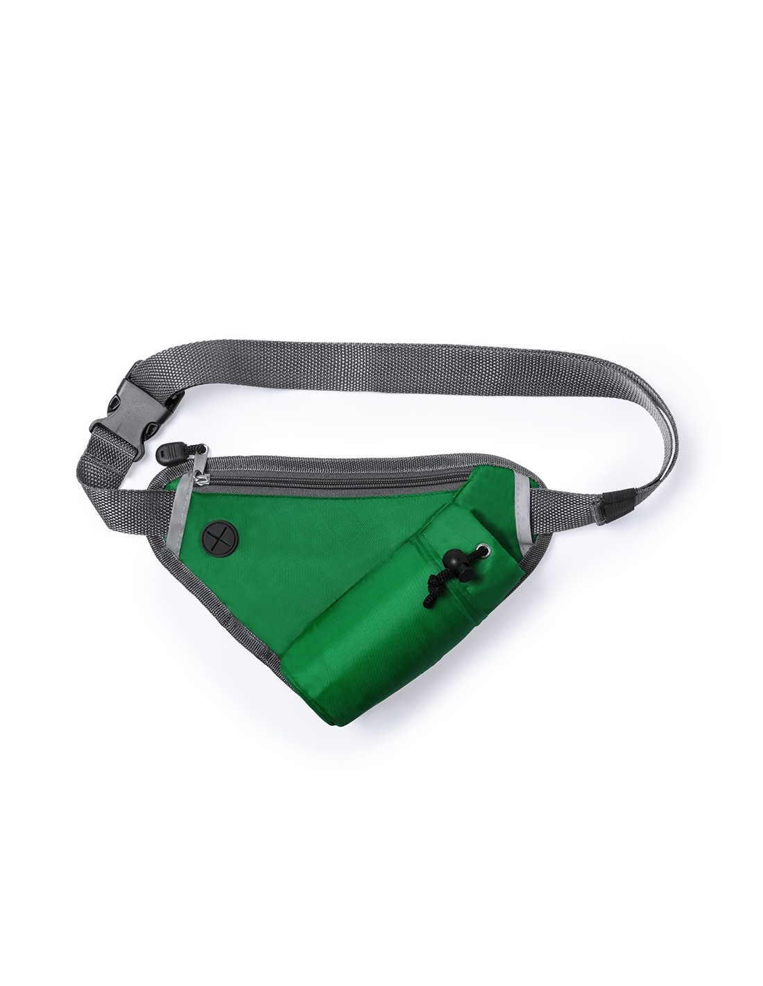 Riñonera con diseño triangular en suave poliéster 210D de variados colores. Diseñada para actividades deportivas y de ocio. Con bolsillo de cierre de cremallera, salida de auriculares, bolsillo ajustable para bidón y cintura con cierre de clic ajustable.