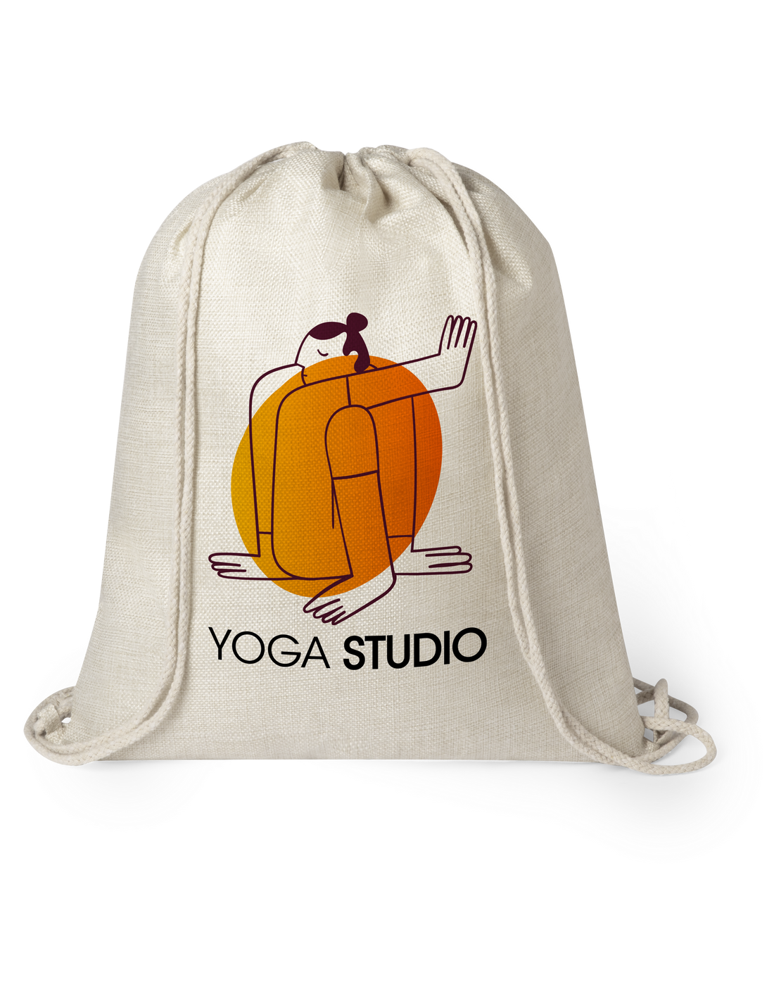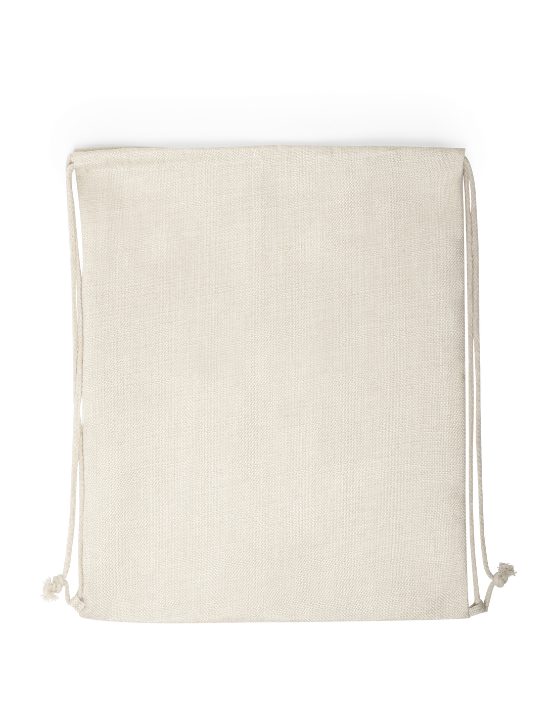Mochila de cuerdas de inspiración nature, en resistente poliéster de suave tacto, especialmente elaborado para impresión en sublimación. Con cuerdas autocierre en color natural y esquinas reforzadas.