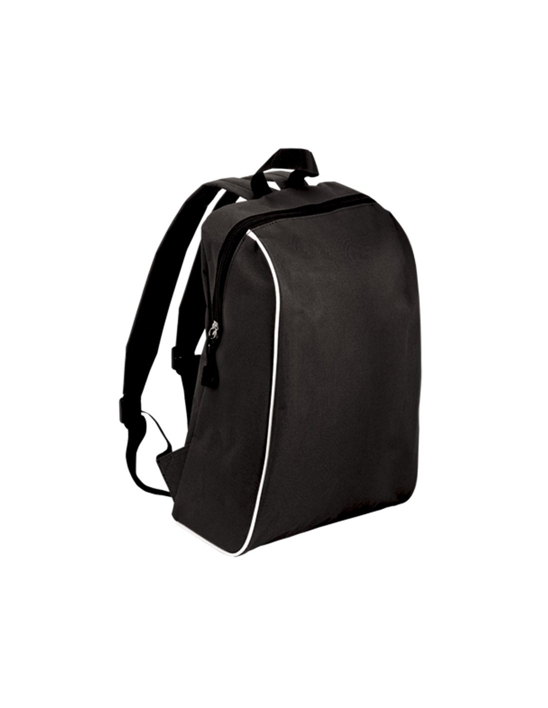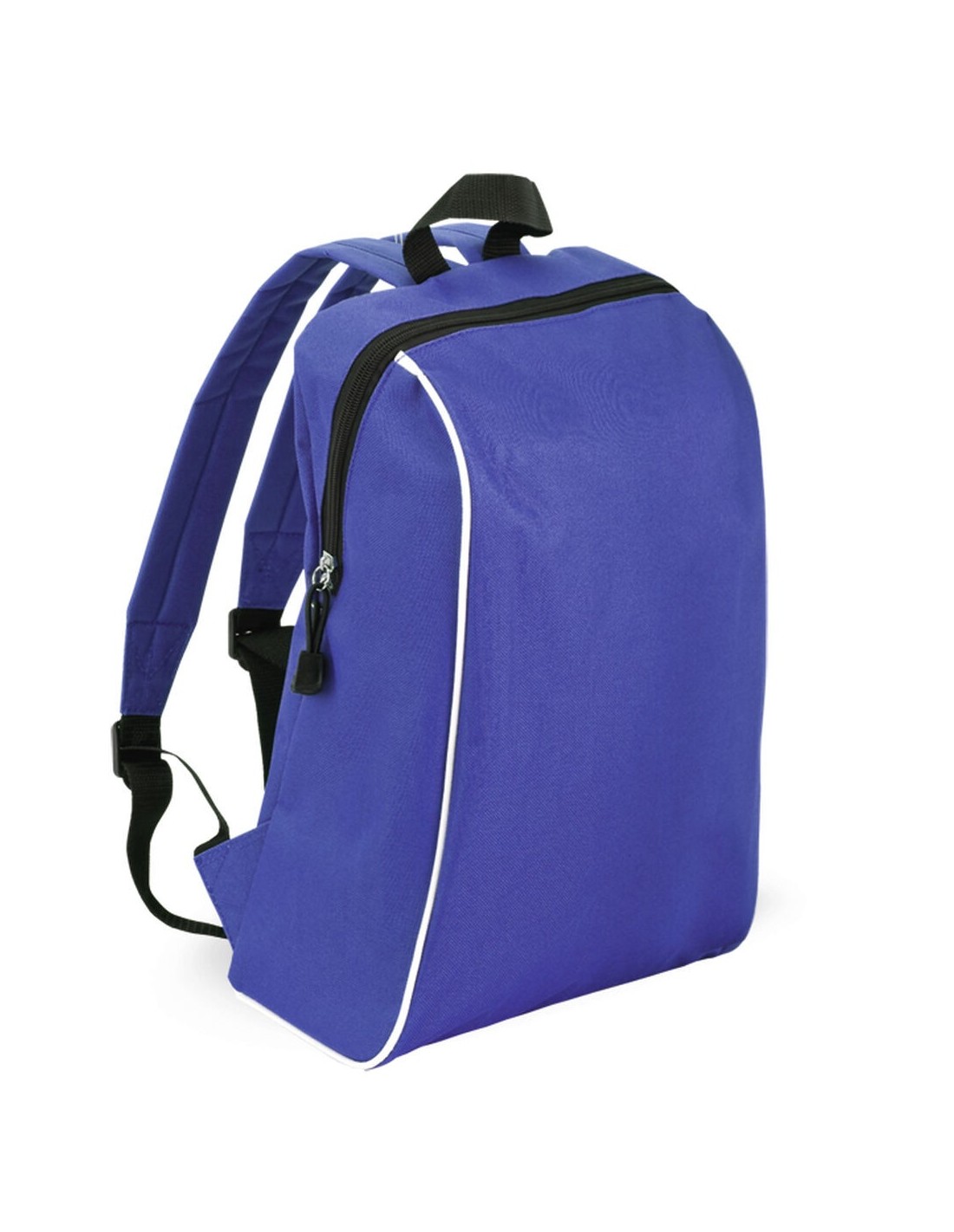 Mochila en resistente poliéster 600D de desenfadado diseño en variada gama de colores, con cierre de cremallera y ribete en color blanco. Con esquinas reforzadas y accesorios en negro. Cintas de hombros ajustables con acolchado.