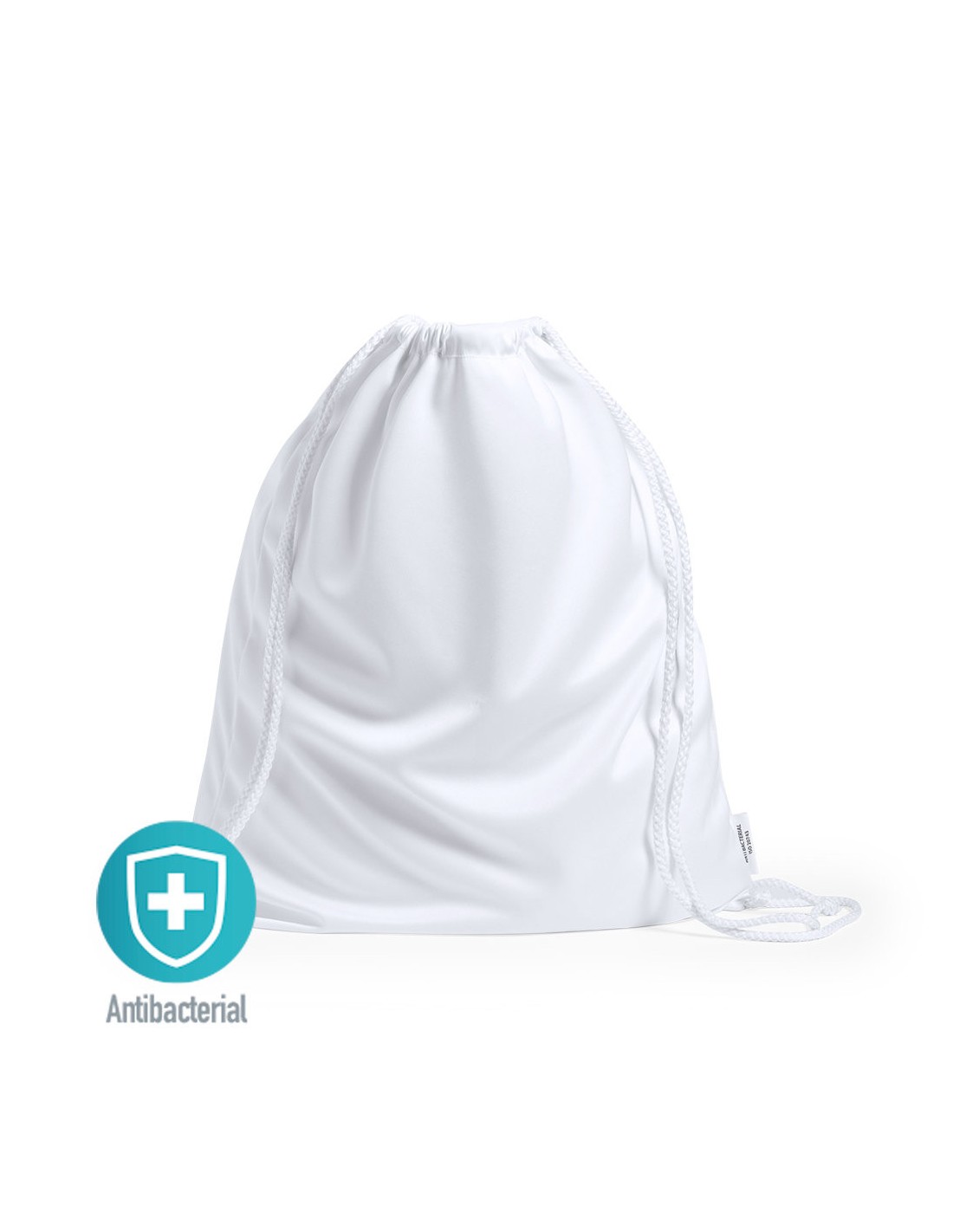 Mochila de cuerdas antibacteriana de alta calidad, en suave poliéster elástico con propiedades hidrófugas, fácil de imprimir. Con etiqueta distintiva antibacteriana. Tamaño 34x42 cm, de acabado cosido y cuerdas gruesas autocierre a juego. Resistencia de hasta 7kg de peso. Los productos con tratamientos antibacterianos son capaces de reducir drásticamente las cargas bacterianas presentes en las superficies de los materiales, gracias a la incorporación de agentes microbianos permanentes estáticos, con alta efectividad para inhibir y prevenir la contaminación bacteriana. Artículo de acuerdo al estándar ISO 20743, que determina la actividad antibacteriana en productos textiles, lo que permite conocer la efectividad de inhibición microbiana que tienen los aditivos sobre los objetos tratados mediante una evaluación cuantitativa.