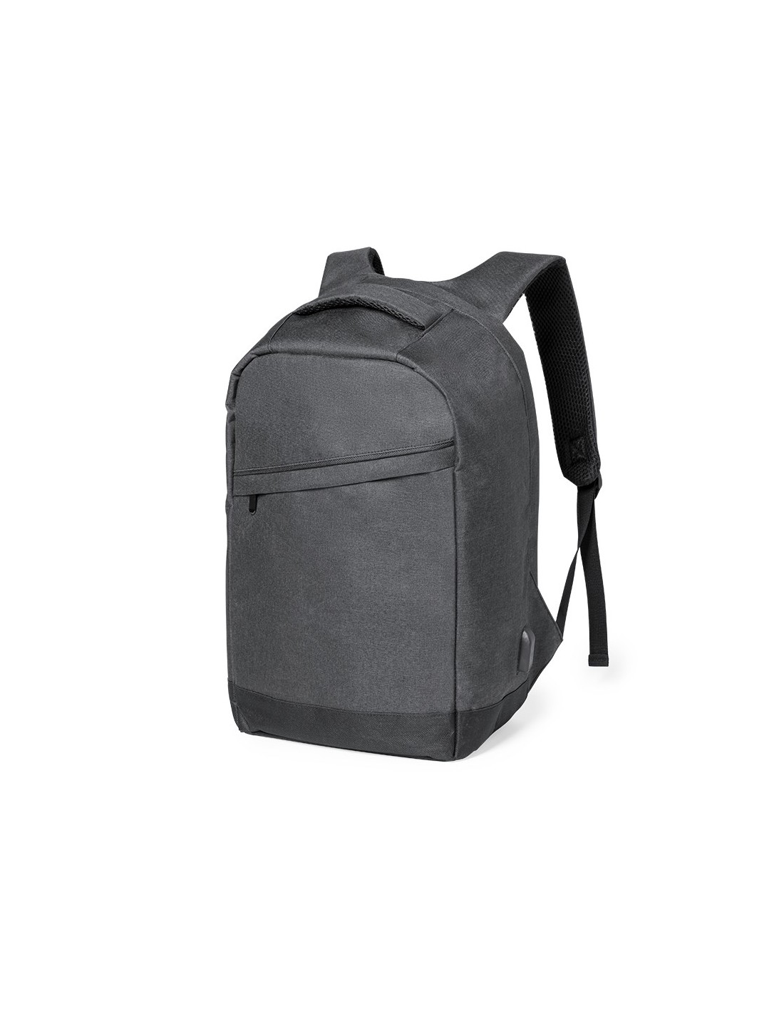 Mochila en resistente poliéster 600D de alta calidad. Con bolsillo antirrobo en la espalda para guardar objetos de valor. Compartimento interior con salida USB para conexión de powerbank -no incluido- y bolsillo exterior con cremallera invisible. Acolchado en asa, parte trasera y cintas para hombros, que además son ajustables. Interior con compartimentos acolchados para ordenador portátil de hasta 15 pulgadas y tablet de hasta 10 pulgadas. Accesorio en espalda para ajuste en trolley.