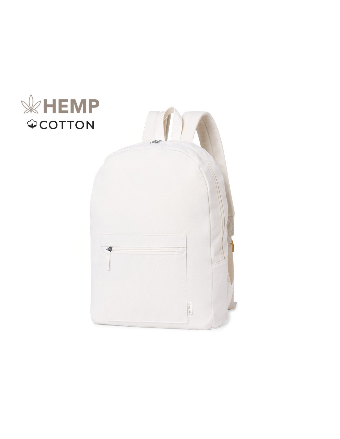 Mochila de línea nature fabricada en tela de cáñamo y algodón de acabado natural. Compartimento principal con cierre de cremallera a juego y doble tirador. Bolsillo exterior con cierre de cremallera, con espalda y cintas para hombros acolchadas. Etiqueta exterior con distintivo cáñamo. El cáñamo se obtiene de la planta cannabis, cuyos procesos tanto de cultivo como de obtención de fibras son respetuosos con el medio ambiente, dando como resultado un material de gran resistencia, de origen natural y sostenible.