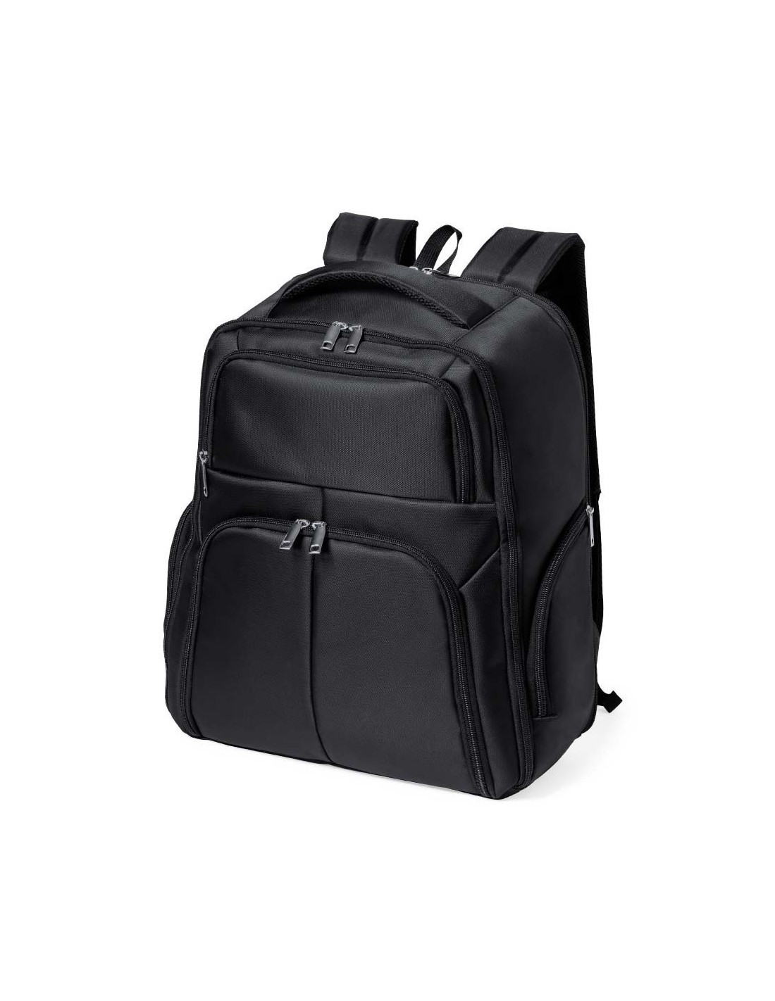 Mochila de calidad premium fabricada en resistente Nyon 600D de acabado en color negro. Compartimento principal con cierre de cremallera a juego y doble tirador. Incluye 3 bolsillos exteriores y 2 bolsillos laterales, todos con cierre de cremallera. Acolchado en asa, parte trasera y cintas para hombros, que además son ajustables. Interior con compartimentos acolchados para ordenador portátil de hasta 17 pulgadas y tablet de hasta 12 pulgadas. Accesorio en espalda para ajuste en trolley.