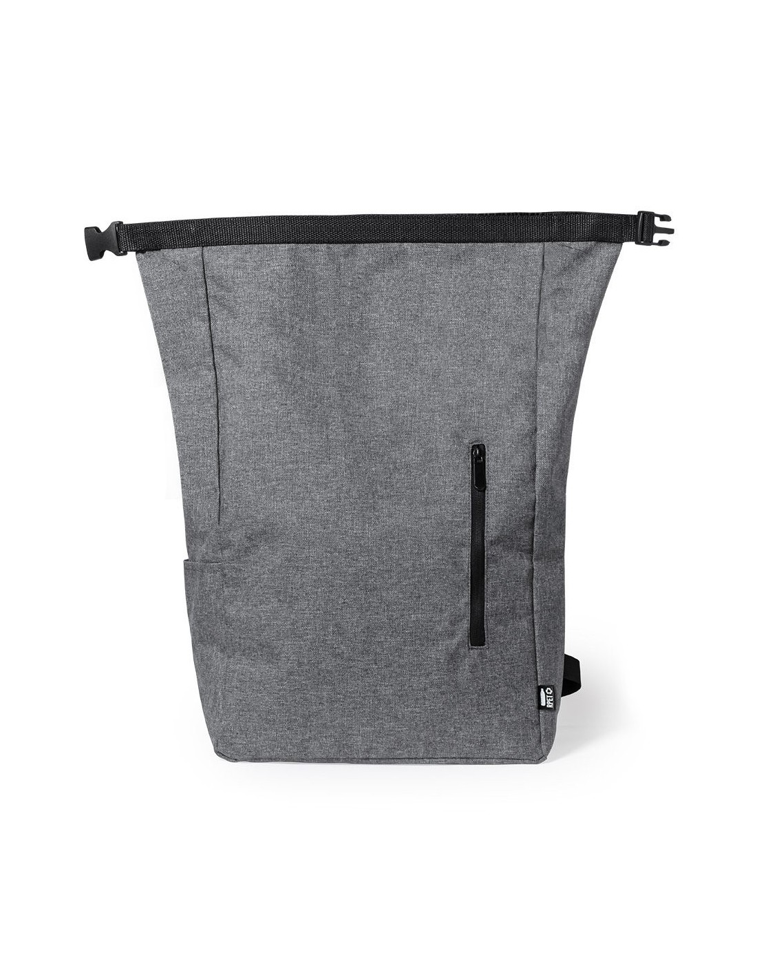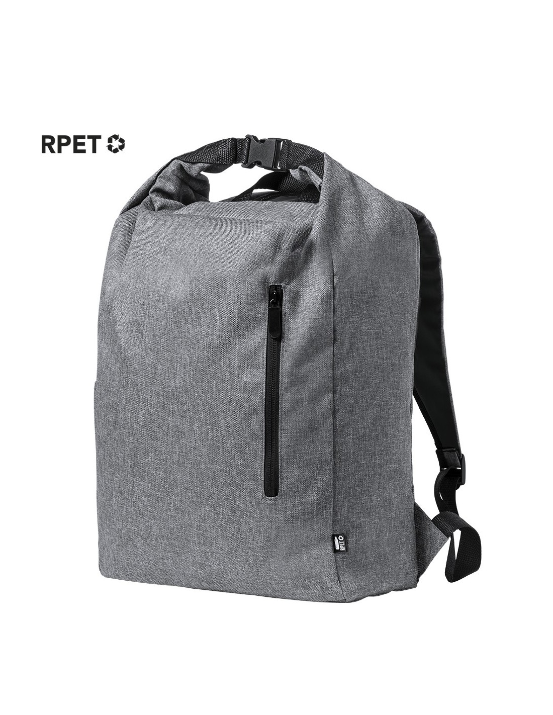 Mochila de línea nature fabricada en resistente 300D RPET, elaborado a partir de plástico reciclado, para así fomentar la reutilización de residuos plásticos y contribuir a la sostenibilidad del planeta. Bolsillo principal con cierre de hebilla y bolsillo lateral. Cintas acolchadas ajustables para hombro y distintivo RPET en etiqueta exterior.