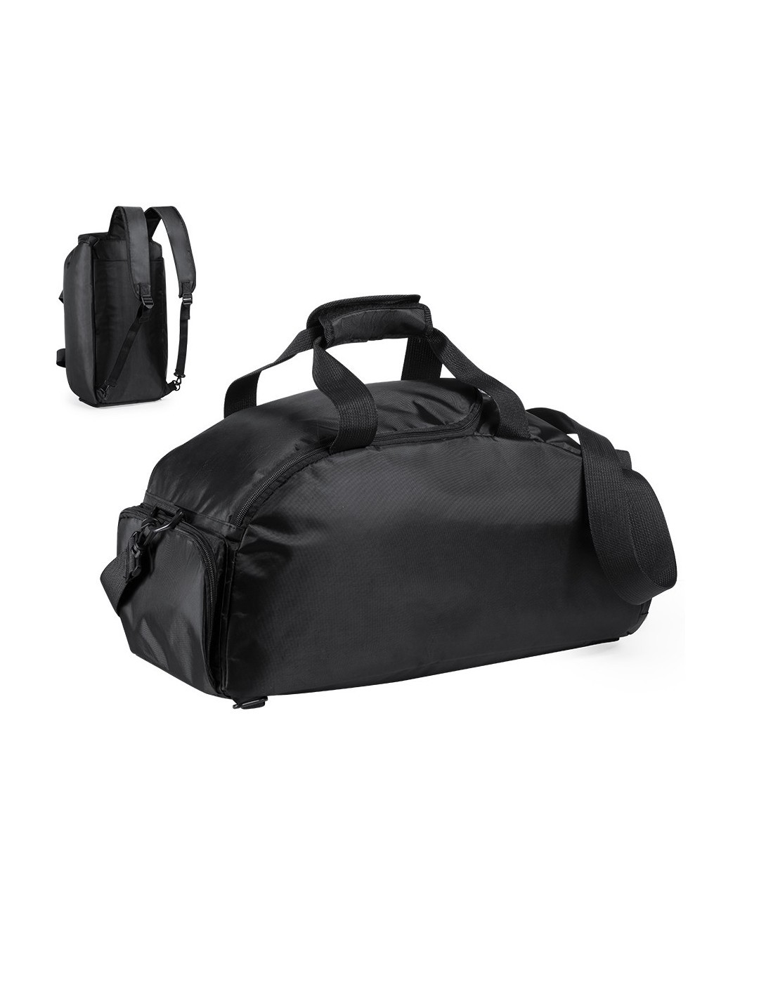 Bolso mochila en resistente nylon 420D. Compartimento independiente de cierre de cremallera para el calzado y bolsillo lateral de cremallera. Compartimento principal con cierre de cremallera de doble tirador y asas de transporte reforzadas, con cierre de velcro. Cintas de hombros y espalda acolchadas con cintas de ajuste regulables.