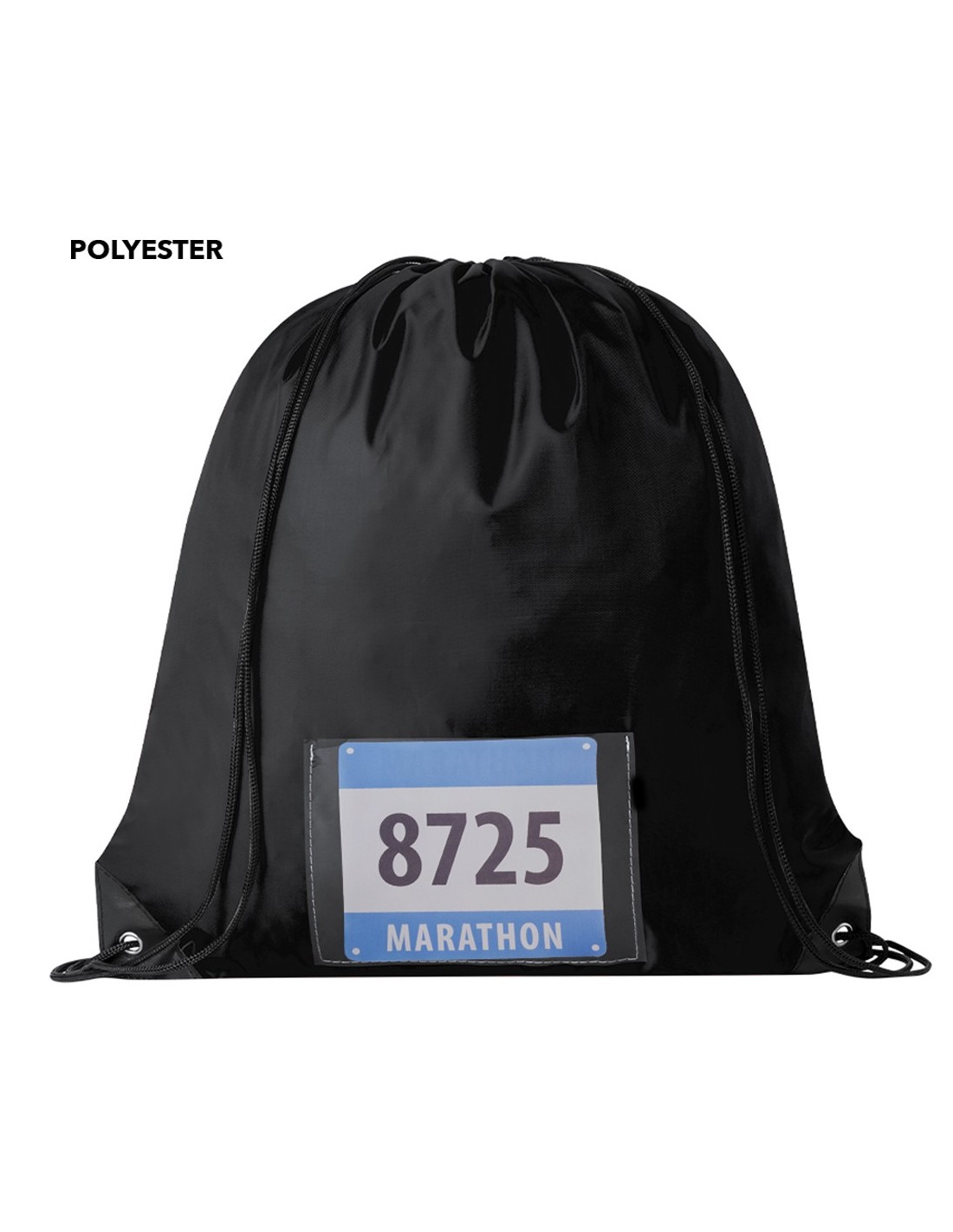 Mochila de cuerdas confeccionada en suave poliéster 210D. Posee cuerdas de autocierre, esquinas reforzadas en negro y argollas metálicas de refuerzo. Cuenta con un bolsillo frontal portadorsal y está disponible en una variada gama de colores (color blanco especialmente fabricado para marcaje en sublimación).