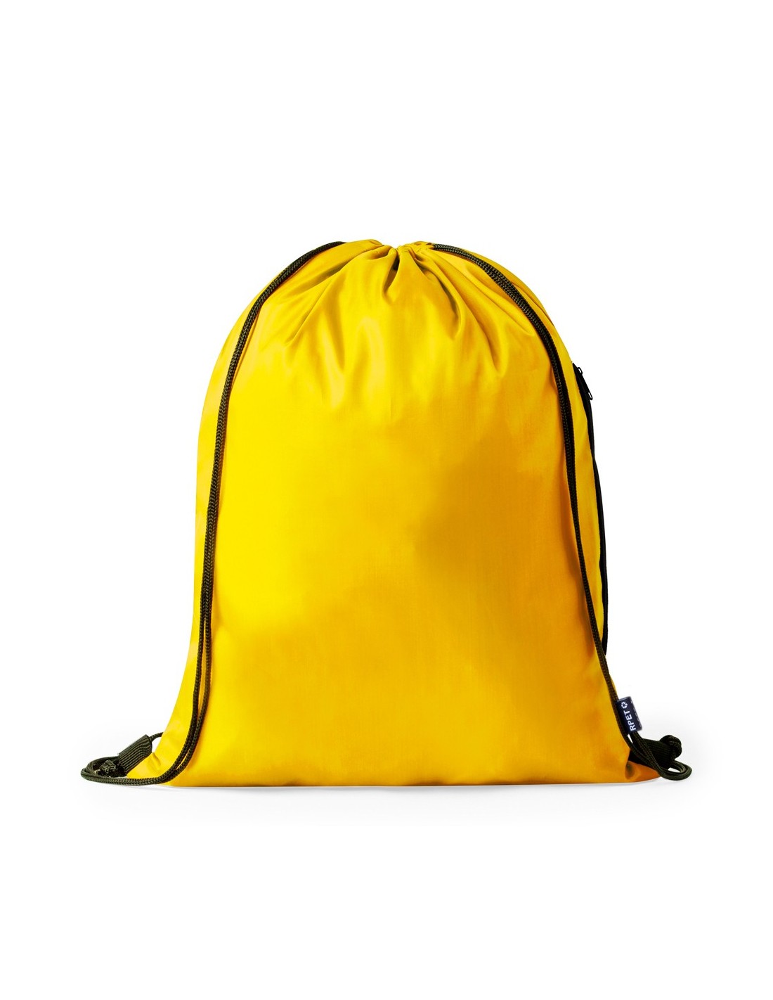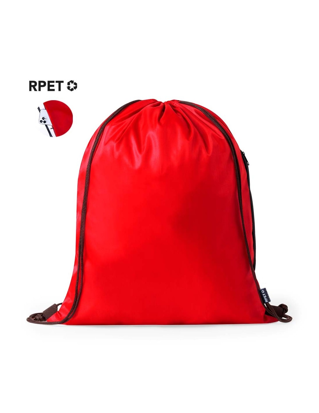 Mochila de cuerdas fabricada en suave poliéster RPET 210T. Cuenta con cuerdas de autocierre en argollas de tela. Incluye un bolsillo lateral con cierre de cremallera en negro, a juego con las cuerdas. Logotipo RPET en etiqueta lateral y está disponible en una variada gama de colores (color blanco especialmente fabricado para marcaje en sublimación)..El material RPET se elabora a partir de plástico reciclado, para así fomentar la reutilización de residuos plásticos y ayudar a la sostenibilidad del planeta.