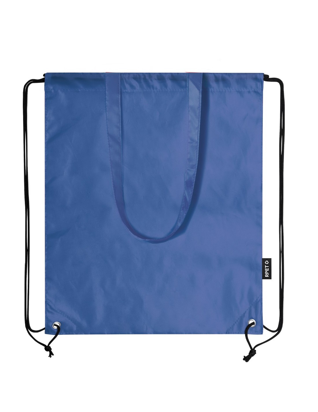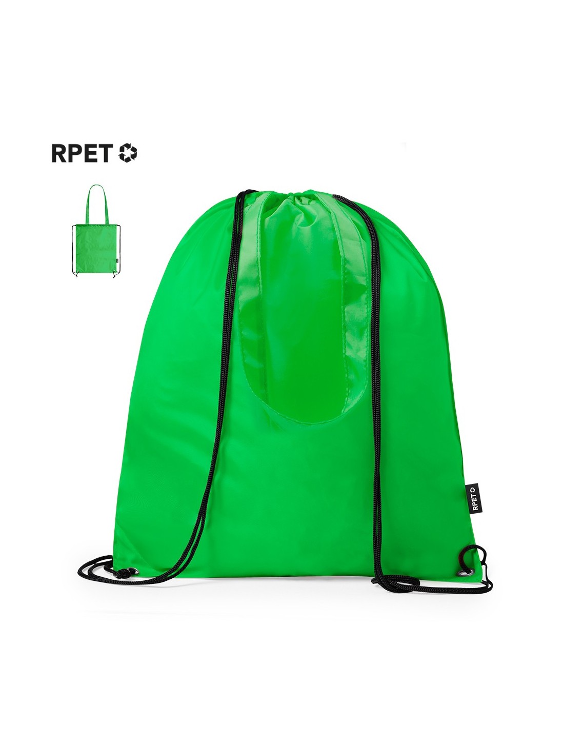 Bolsa mochila de cuerdas en resistente RPET 210T, con asas de transporte de 70 cm a juego. Las cuerdas cuentan con argollas metálicas reforzadas y logotipo RPET reciclado en etiqueta lateral. Disponible en una variada gama de colores. .El material RPET se elabora a partir de plástico reciclado, para así fomentar la reutilización de residuos plásticos y ayudar a la sostenibilidad del planeta.