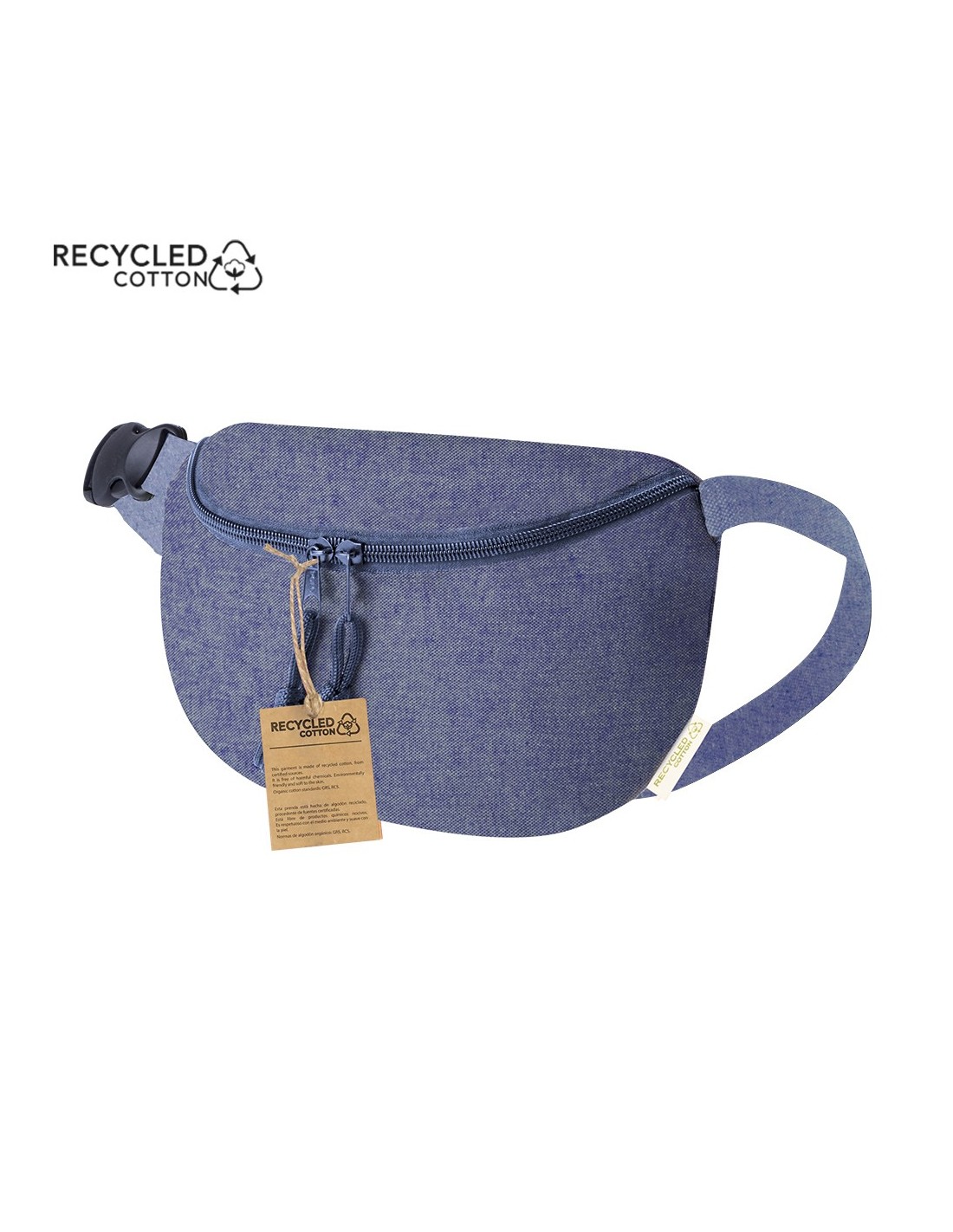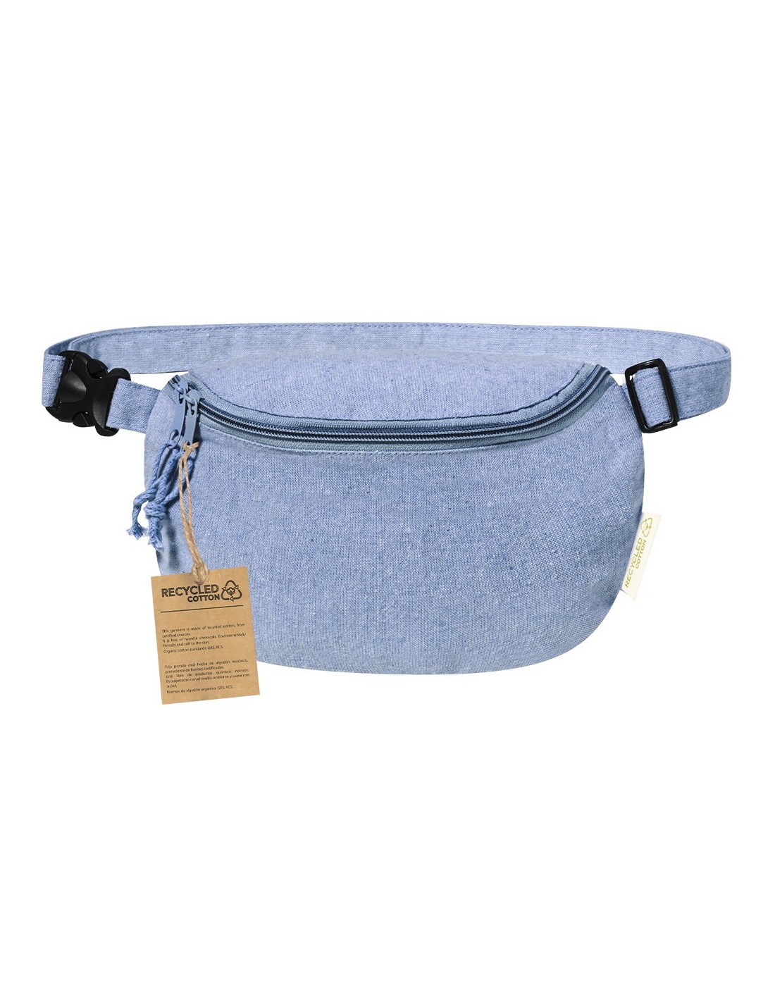 Riñonera fabricada en algodón 100% reciclado GRS de 220g/m2. Cuenta con un bolsillo central con cierre de doble cremallera y una cinta ajustable con cierre de clip. Disponible en una variada gama de colores y con logotipo algodón reciclado en la etiqueta exterior. Disponible certificación GRS (Global Recycled Standard / Estándar de Reciclaje Global), que garantiza el origen reciclado del material usado para fabricar el producto.