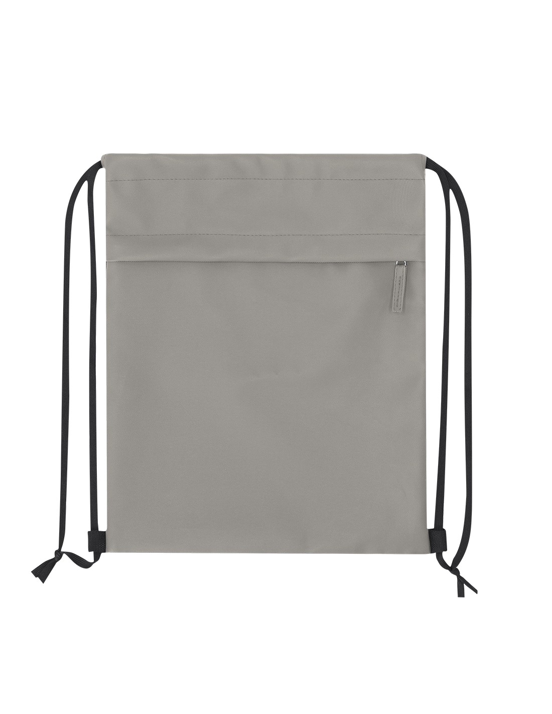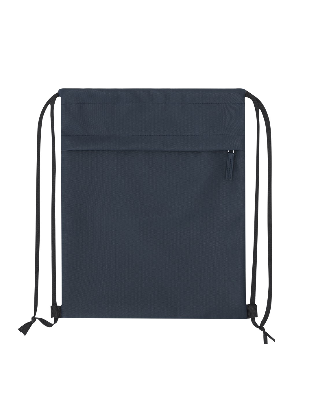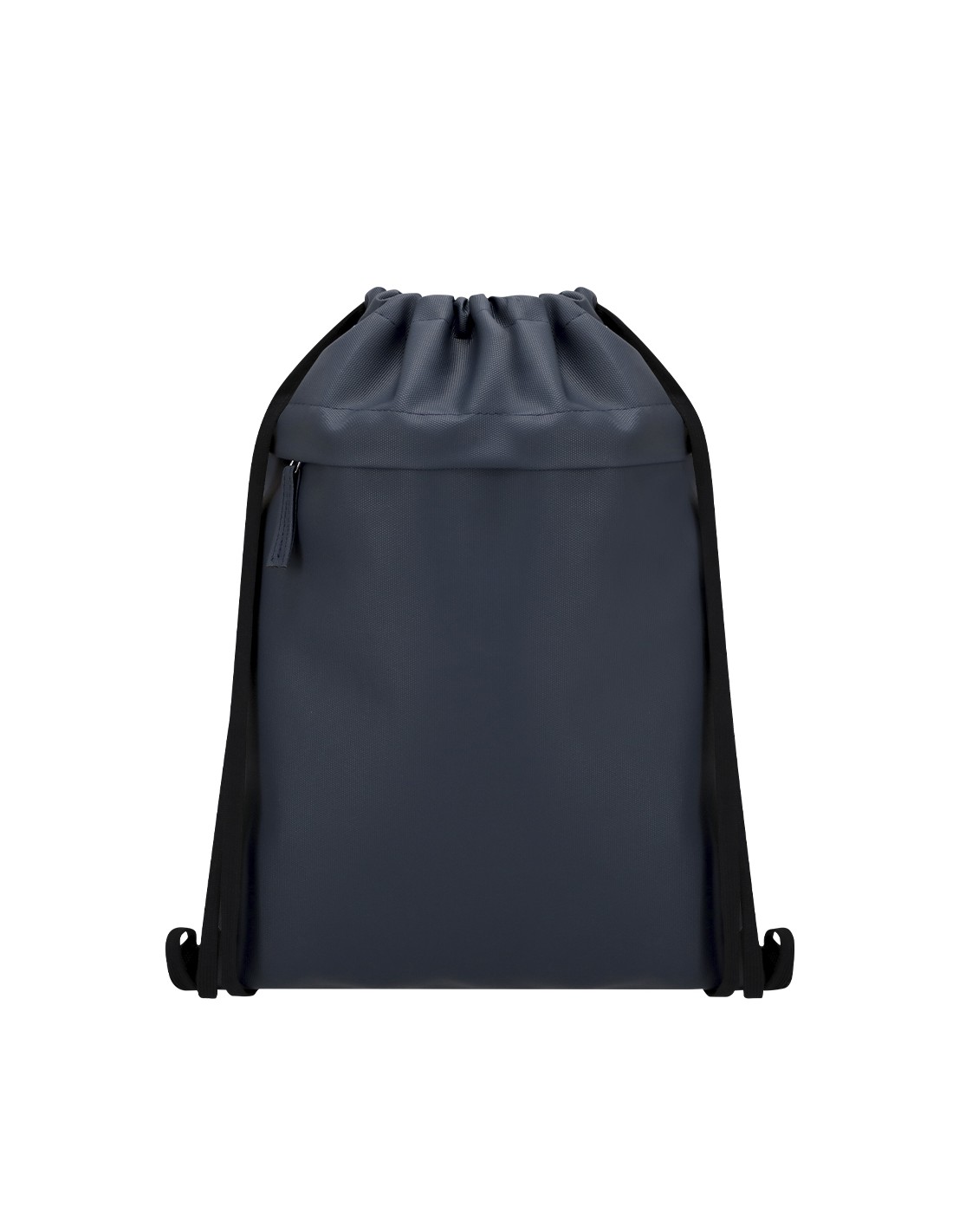 Mochila de cuerdas fabricada en suave PU combinado con resistente poliéster 600D. Incluye funcional bolsillo frontal con cierre de cremallera y tirador a juego en PU.