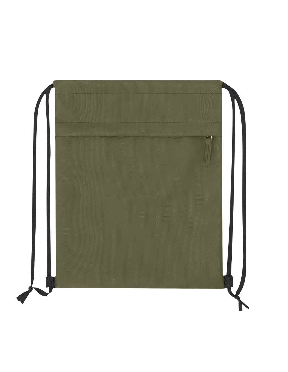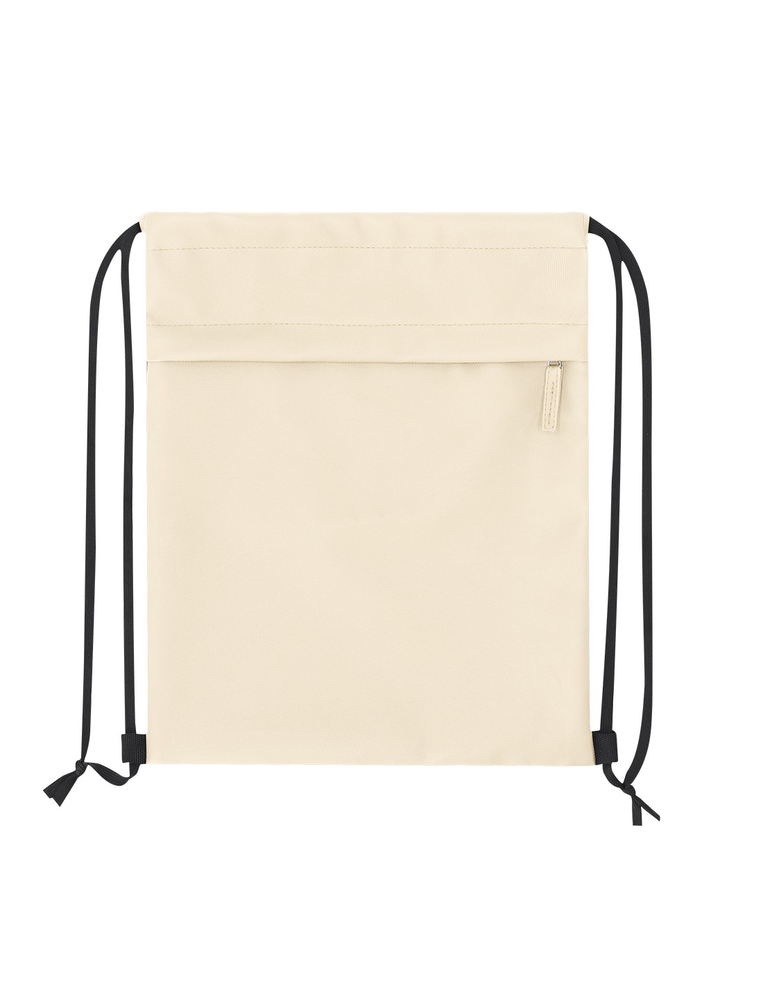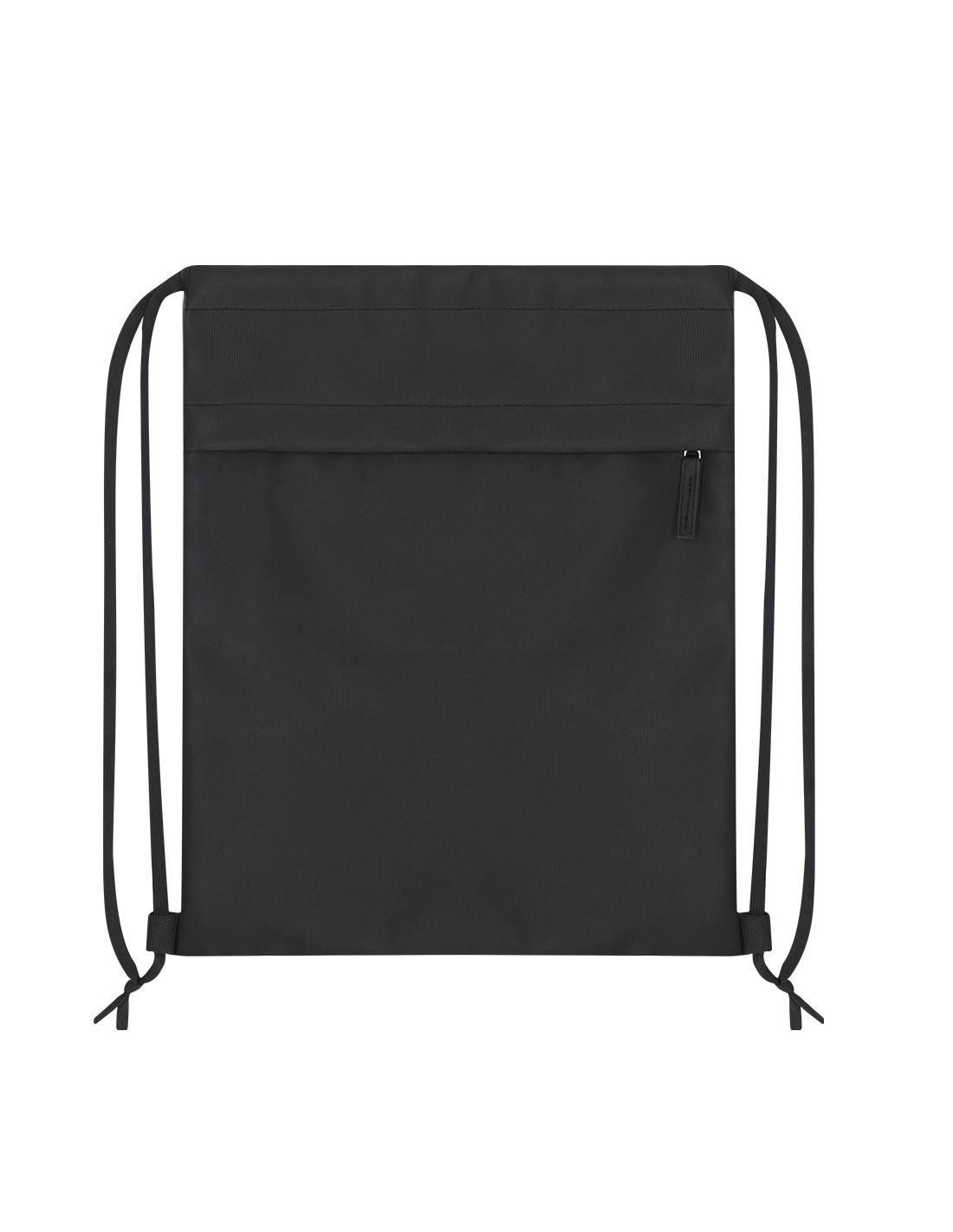 Mochila de cuerdas fabricada en suave PU combinado con resistente poliéster 600D. Incluye funcional bolsillo frontal con cierre de cremallera y tirador a juego en PU.