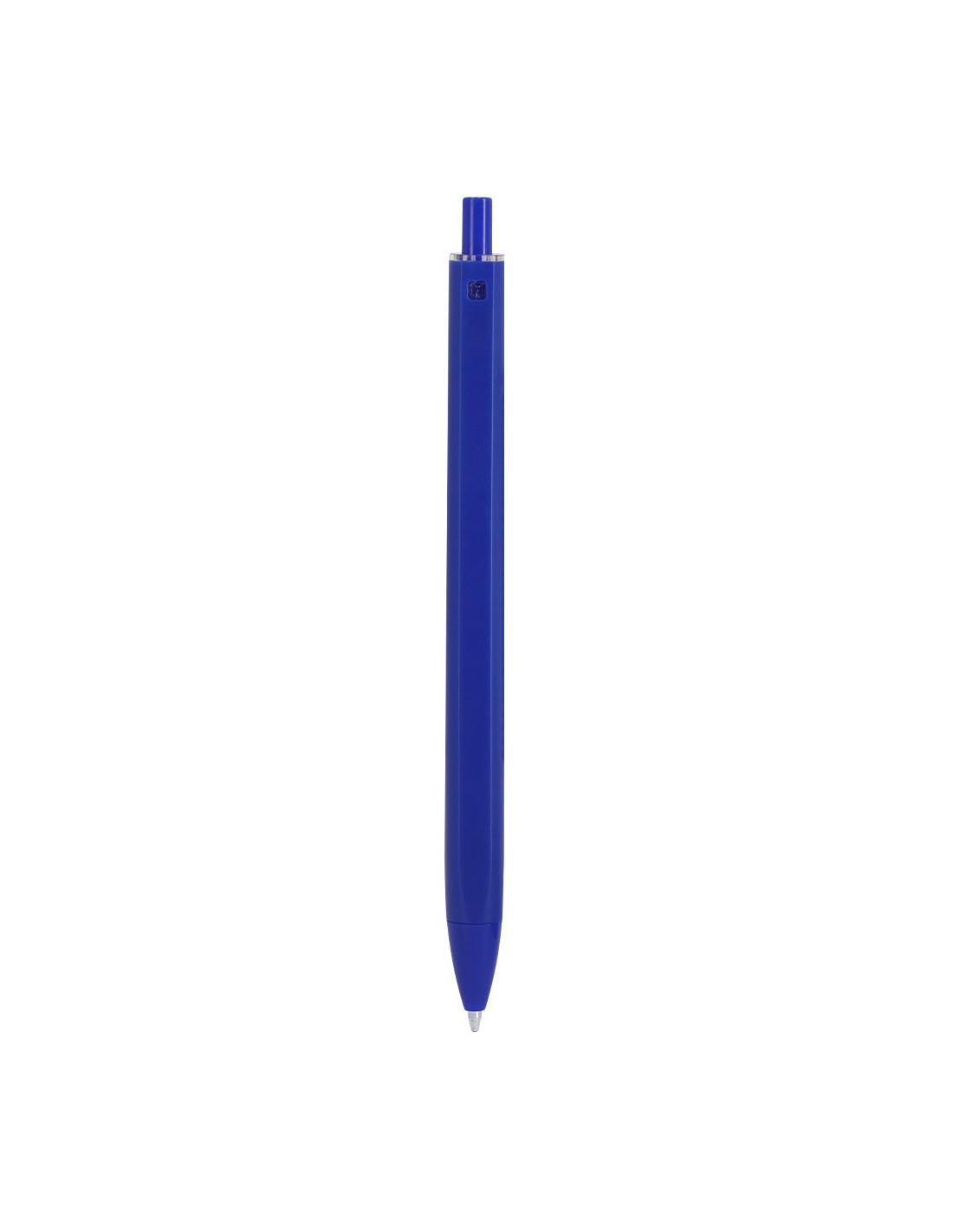 Bolígrafo de mecanismo pulsador fabricado en ABS. Pulsador en mismo color que cuerpo con acabado mate. Con original diseño en cuerpo frontal plano y contorno redondeado.En tinta azul.