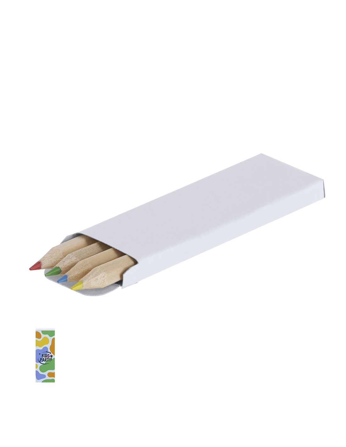 Cajas de 4 lápices de madera, con cuerpo hexagonal y minas en varios colores. Presentados en estuche de cartón blanco con cierre de solapa. Diseñado especialmente para grabado digital.