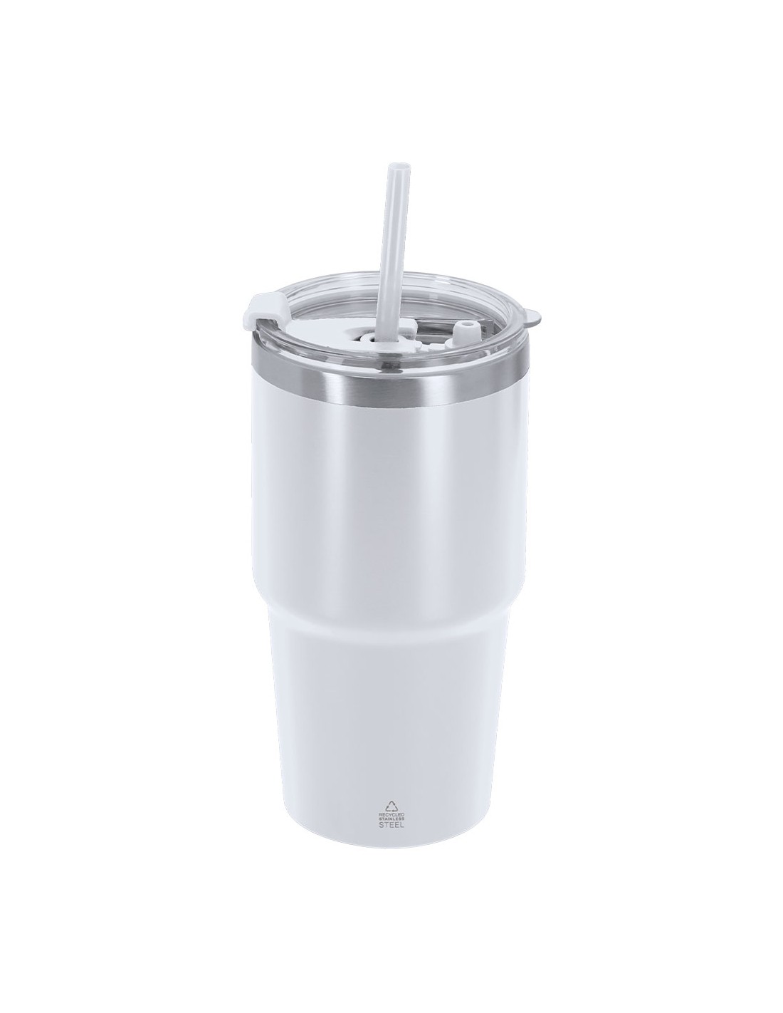 Vaso térmico fabricado en acero inox reciclado de doble pared y 650 ml de capacidad. Cuenta con doble sistema de bebida: orificio con cierre hermético y pajita integrada, adaptándose a las preferencias de uso. Cuenta con tapón para cierre hermético cuando se extrae la pajita. Es ideal para tener en tu escritorio, mesa o en cualquier superficie donde disfrutar tranquilamente de tu bebida favorita. Con logotipo Acero Inox Reciclado.