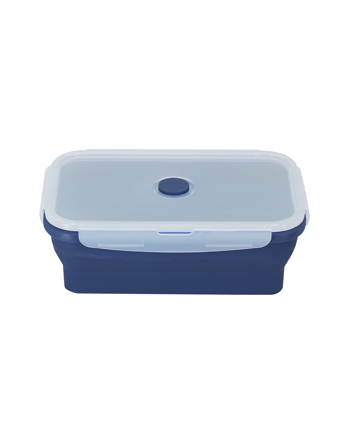 Fiambrera plegable de 1,2 L de capacidad. Fabricado en silicona de alta calidad con tapa en PP rígida translúcida con cierre de seguridad. Con cuerpo flexible de acabado mate, esta fiambrera puede ser plegada para un cómodo y sencillo almacenamiento. Libre de BPA. Con logo Food Grade en base.