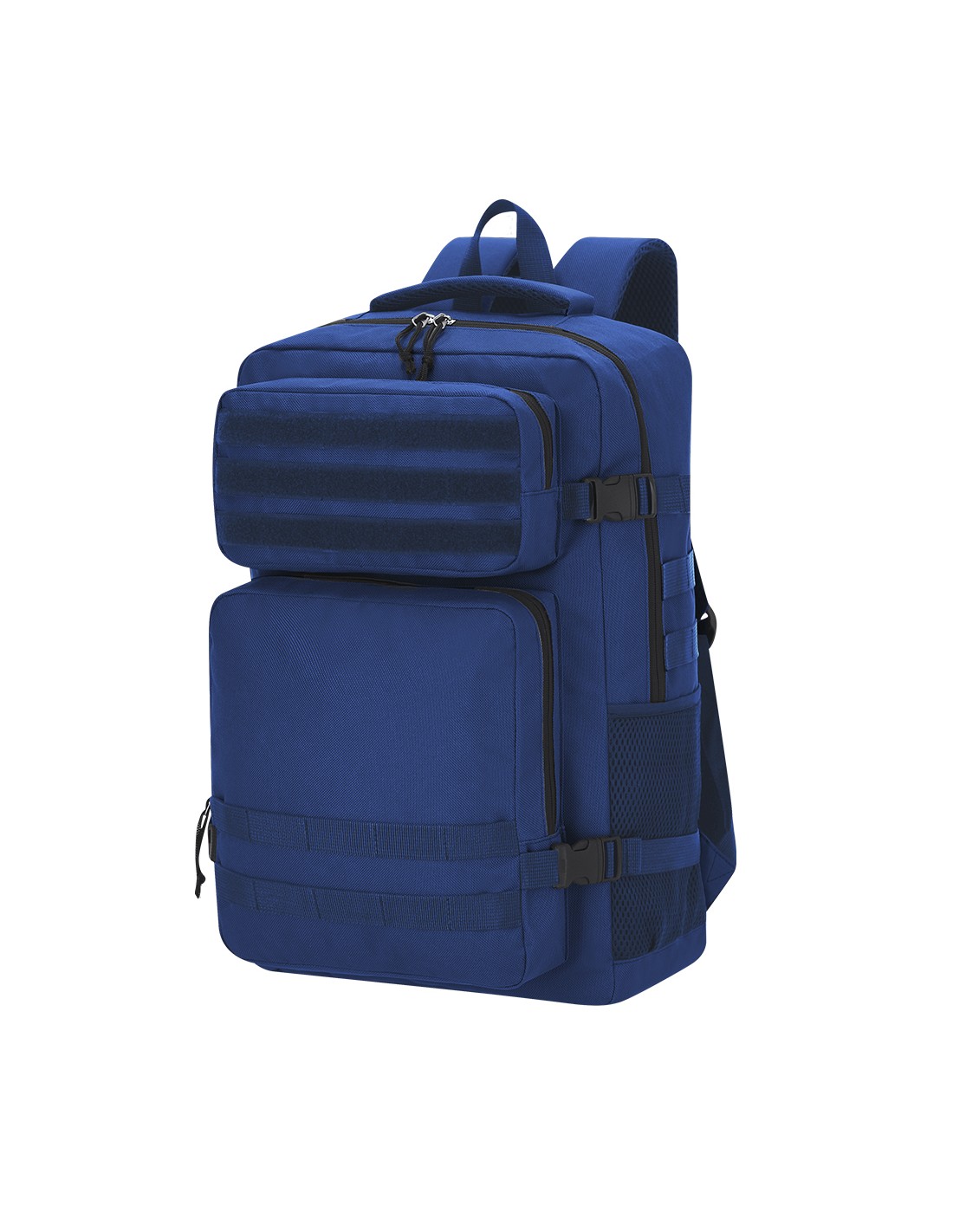 Mochila en resistente poliéster 600D. Parte frontal con múltiples bolsillos, además de soportes elásticos y velcros para colgar los accesorios necesarios durante la aventura. Compartimento principal con cierre de cremallera de doble tirador , con capacidad para portátil de 17 pulgadas. Incluye asa de transporte. Con espalda y cintas de hombros acolchadas y ajustables, cinta para trolley, y bolsillos laterales de rejilla.