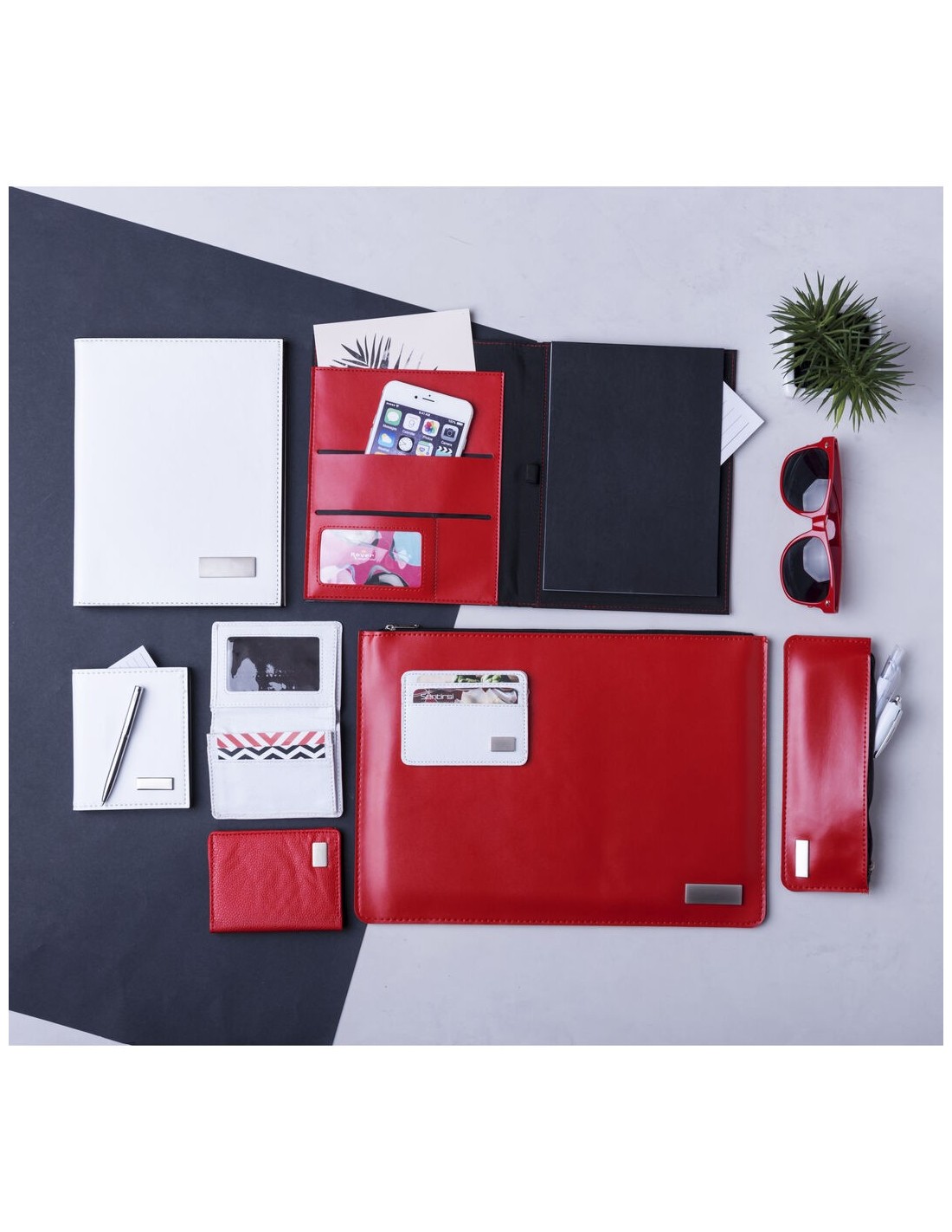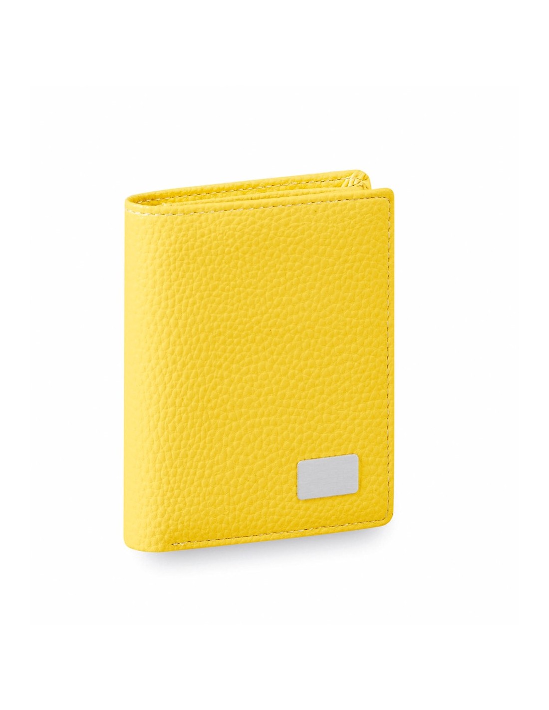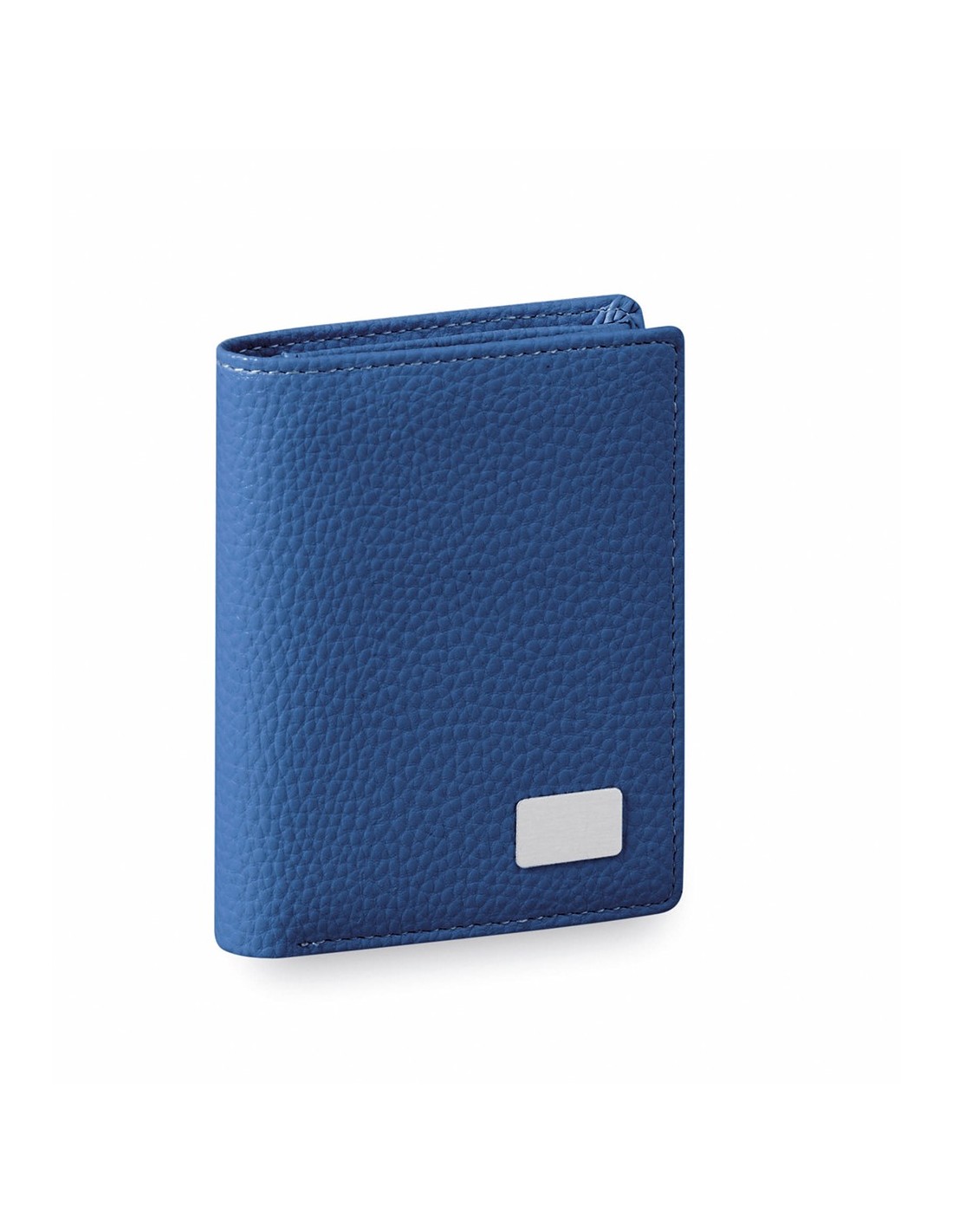 Cartera con cuerpo en suave acabado de elegante polipiel brillante en variada gama de colores. Interior con billetero, compartimento transparente para documentación y 4 compartimentos para tarjetas. Con chapa metálica exterior para marcaje en láser.