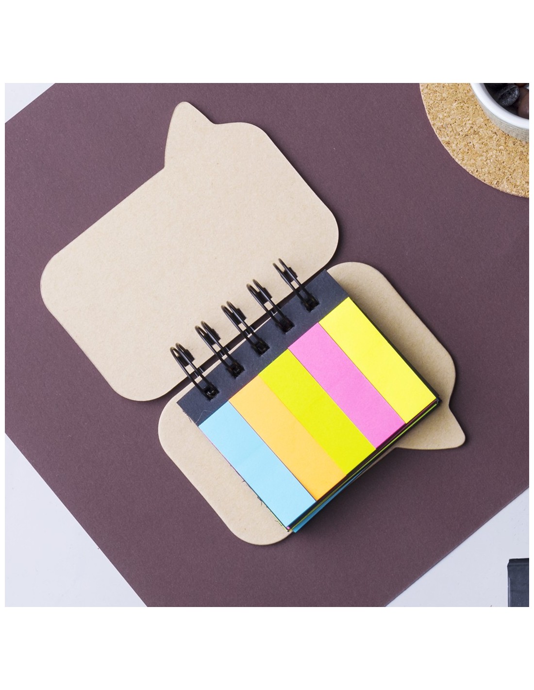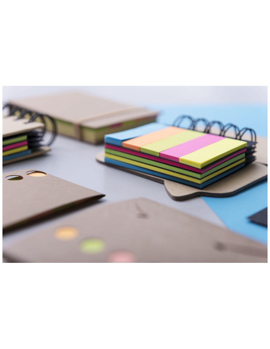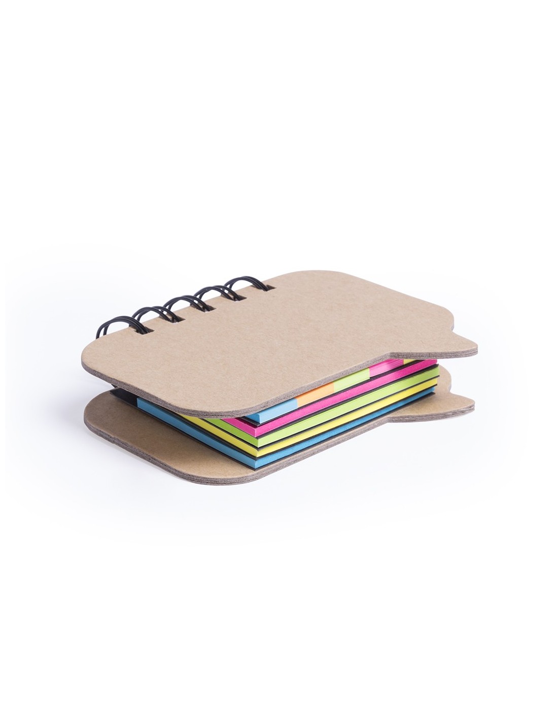 Original bloc de notas adhesivas de anillas con diseño de bocadillo y tapas de suave tacto acabadas en resistente cartón reciclado rígido. Con 100 notas adhesivas grandes y 125 mini notas adhesivas.