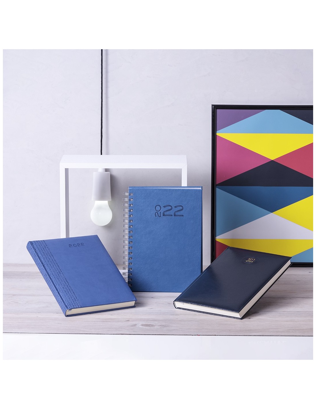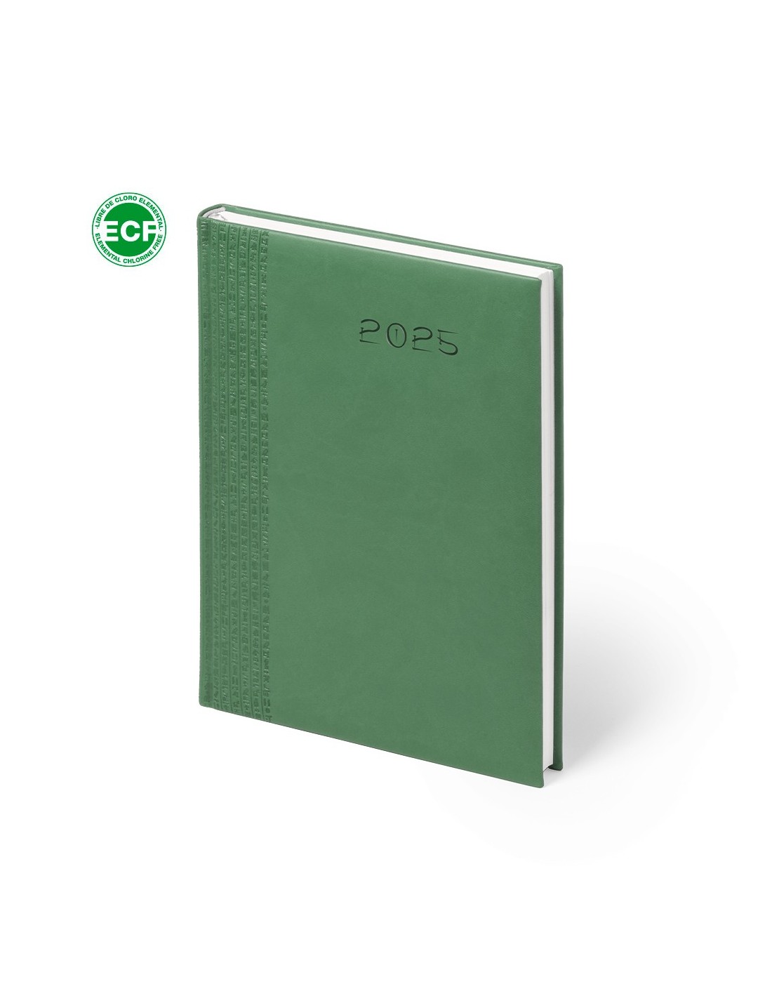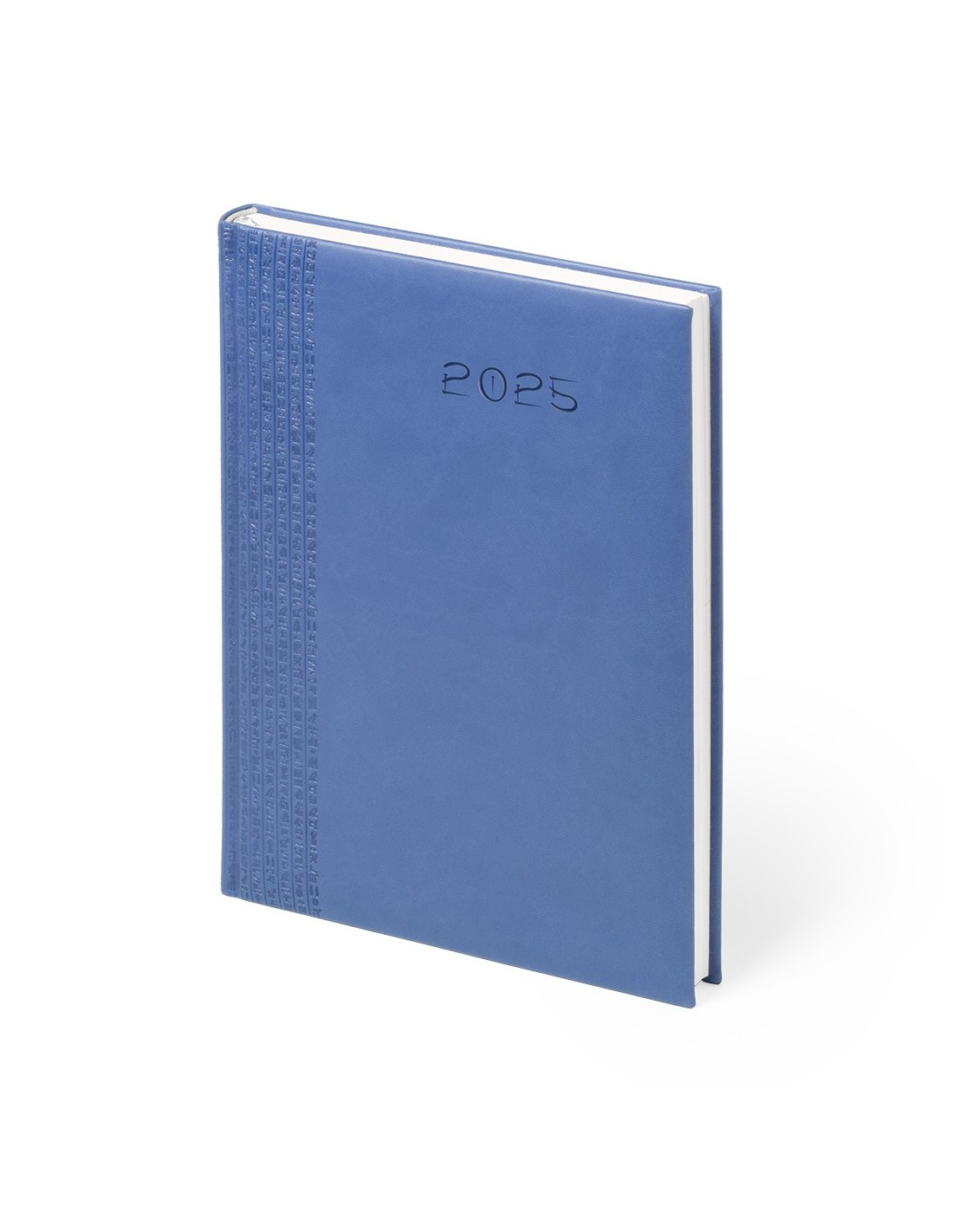Agenda de tamaño B5 acabada en resistente y suave polipiel bitono con acolchado y de variados colores. Diseño página día con frase del día y marcapáginas de tela. En castellano, gallego, euskera y catalán. Presentada en caja individual.