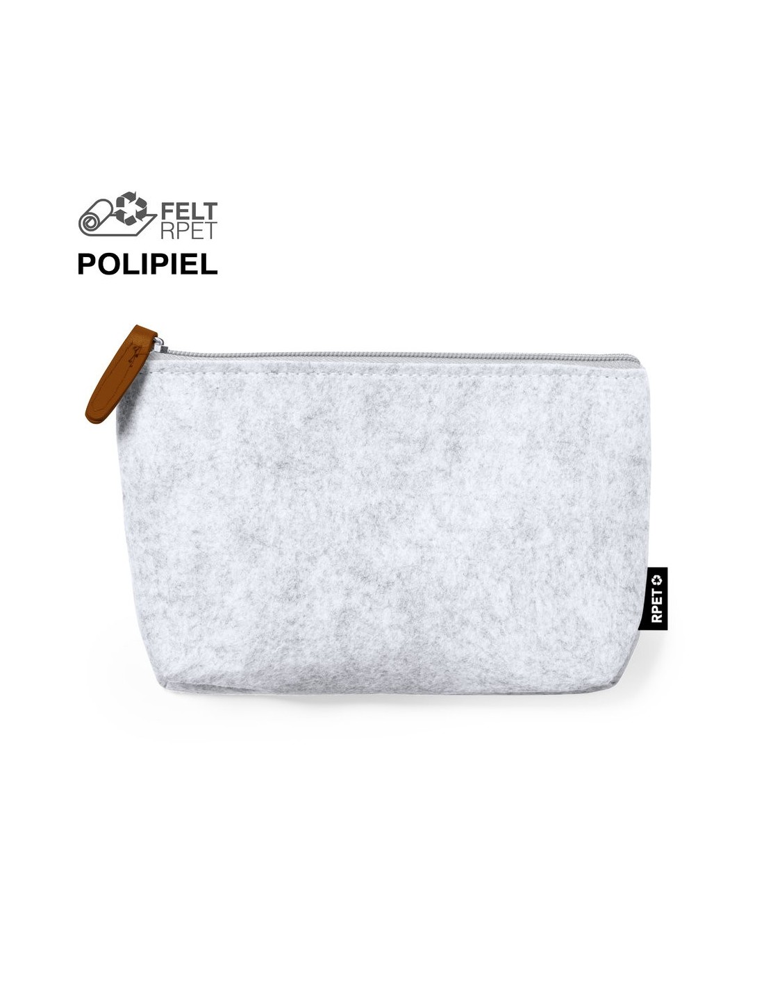 Estuche de línea nature elaborado en resistente fieltro RPET. Compartimento principal con cierre de cremallera a juego y original tirador de polipiel en tono marrón. Con etiqueta RPET en exterior. El fieltro RPET es fruto de la combinación del proceso de reciclaje de materiales plásticos junto con la técnica milenaria de fabricación del fieltro, dando como resultado un material de eco-tendencia que, además de ser de origen reciclado, también se convierte en reciclable.