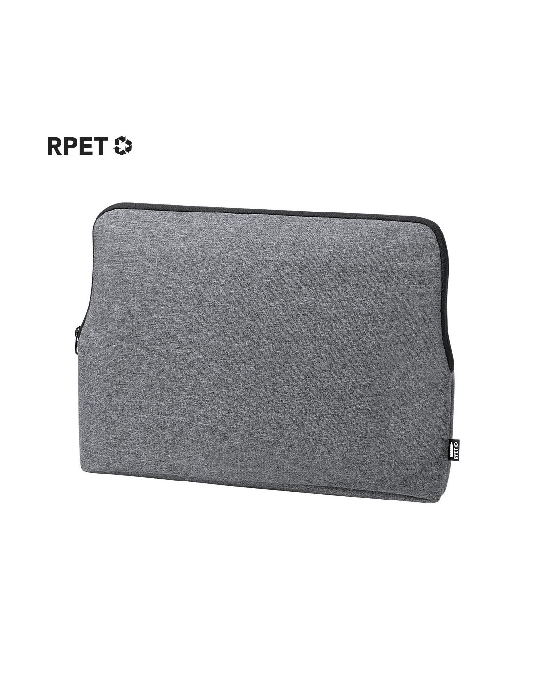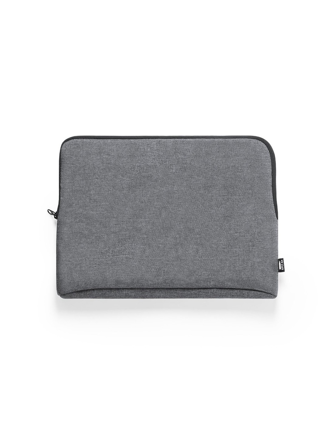 Funda para ordenador portátil de línea nature y en resistente 600D RPET efecto melange, elaborado a partir de plástico reciclado para así fomentar la reutilización de residuos plásticos y contribuir a la sostenibilidad del planeta. Detalles en negro y compartimento principal con cierre de cremallera. Interior totalmente acolchado y forrado, con distintivo RPET en etiqueta exterior.