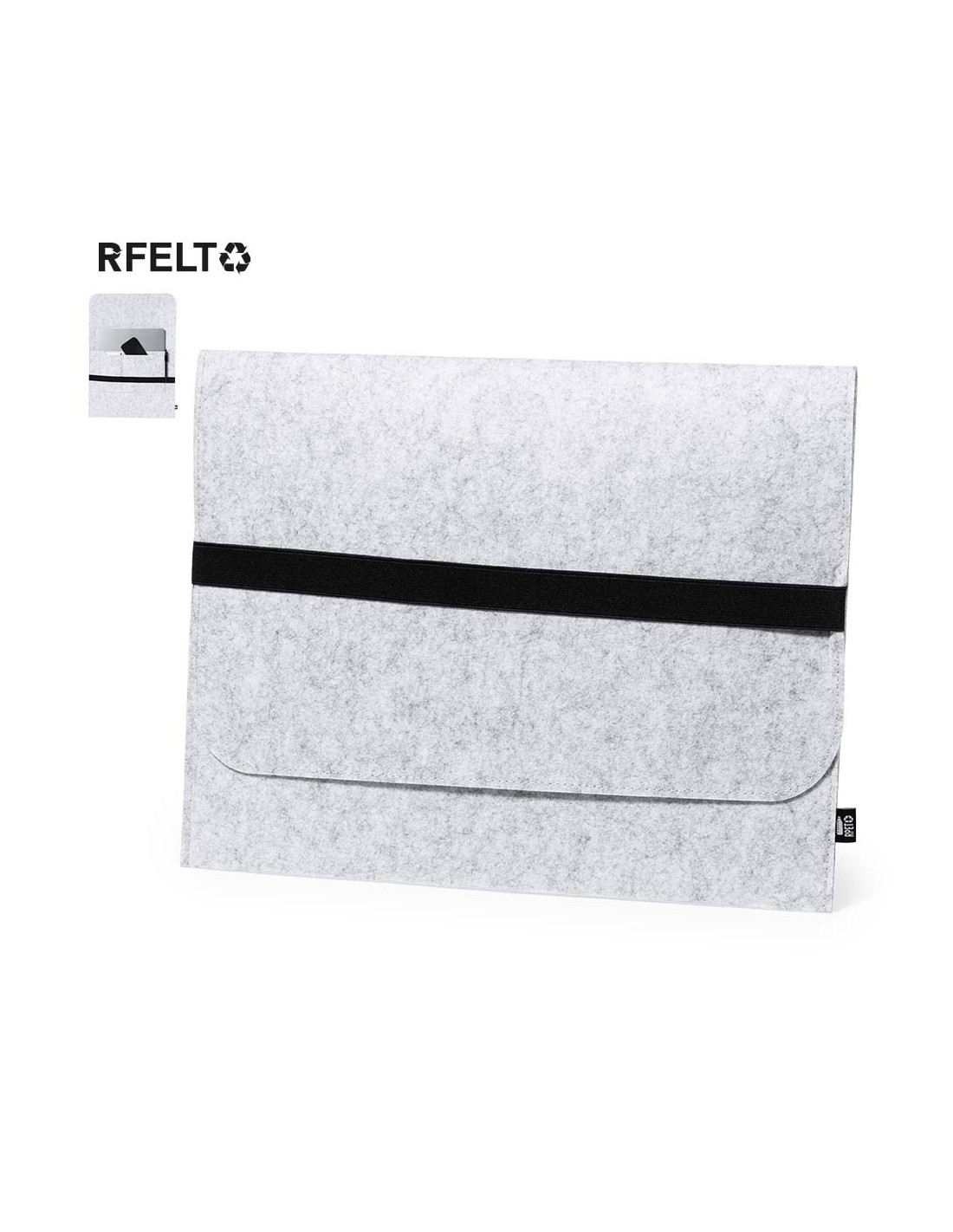 Funda para ordenador portátil en resistente fieltro RPET reciclado. Solapa con cierre de goma elástica y bolsillo frontal, con distintivo RPET en etiqueta exterior. Para portátiles de hasta 15 pulgadas. El fieltro RPET reciclado es fruto de la combinación del proceso de reciclaje de materiales plásticos junto a la técnica milenaria de fabricación del fieltro, dando como resultado un material de eco-tendencia que, además de ser de origen reciclado, también se convierte en reciclable.