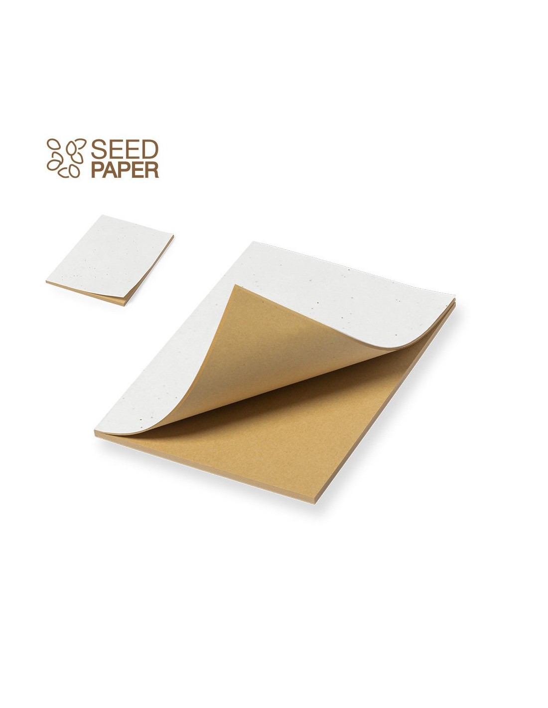 Bloc de notas A6 de línea nature, con cubiertas fabricadas en papel semilla, reciclable y degradable. Incluye semillas de petunia en ambas cubiertas, convirtiéndolo así en papel plantable al final de su vida útil. Interior con 60 hojas lisas de acabado kraft. Flores en colores surtidos, con instrucciones de plantado en el interior y presentado en bolsa individual de cartón reciclado.
