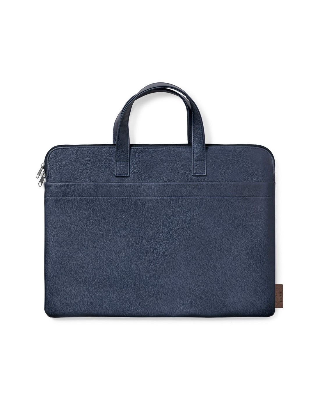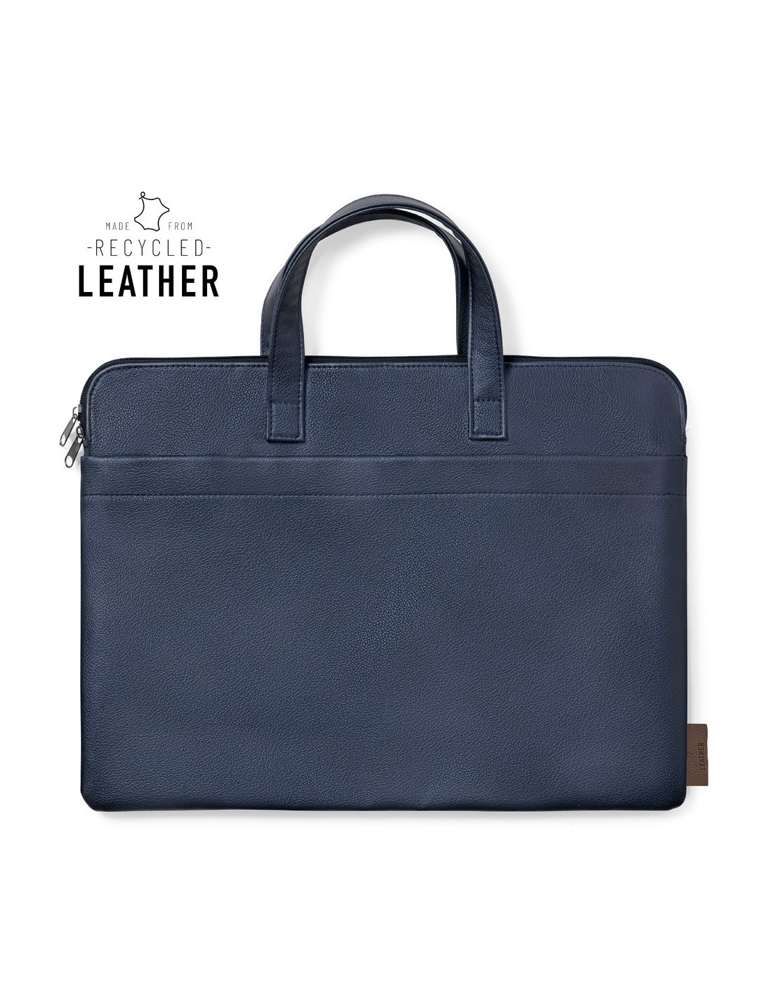 Resistente portadocumentos premium, fabricado en cuero reciclado. Compartimento principal con cierre de cremallera y doble tirador metálico. Interior acolchado, con bolsillo exterior y asas reforzadas a juego. Etiqueta exterior con distintivo cuero reciclado. El cuero reciclado rescata las fibras desechadas en los procesos de fabricación del cuero, minimizando el desperdicio de material, contribuyendo a reducir el impacto ambiental y manteniendo a la vez sus propiedades originales.