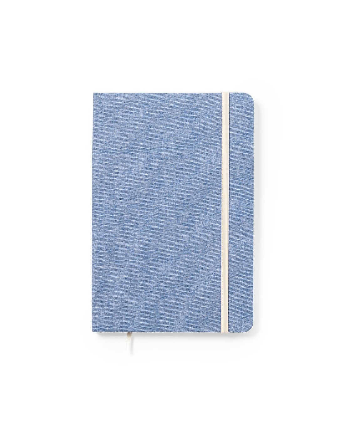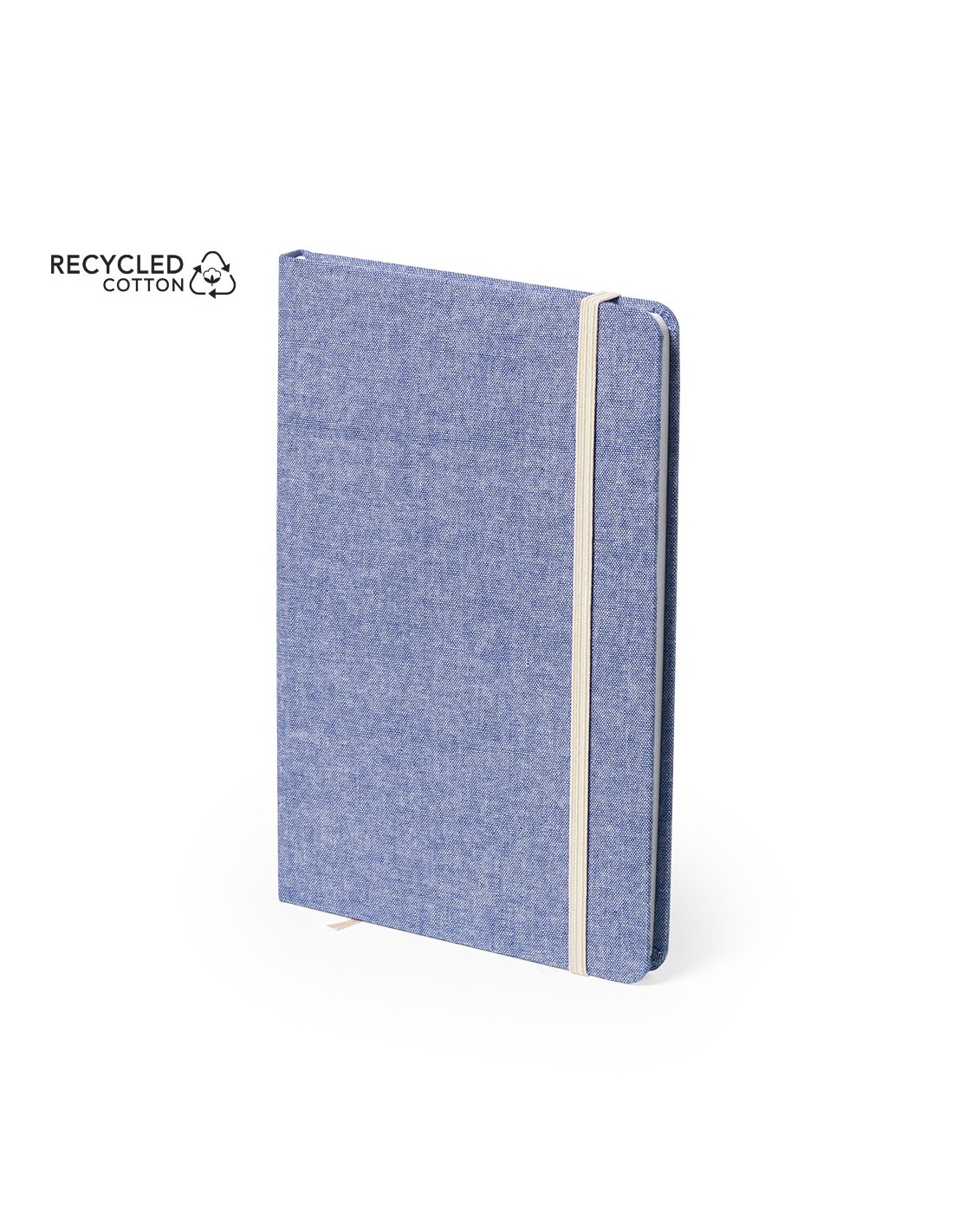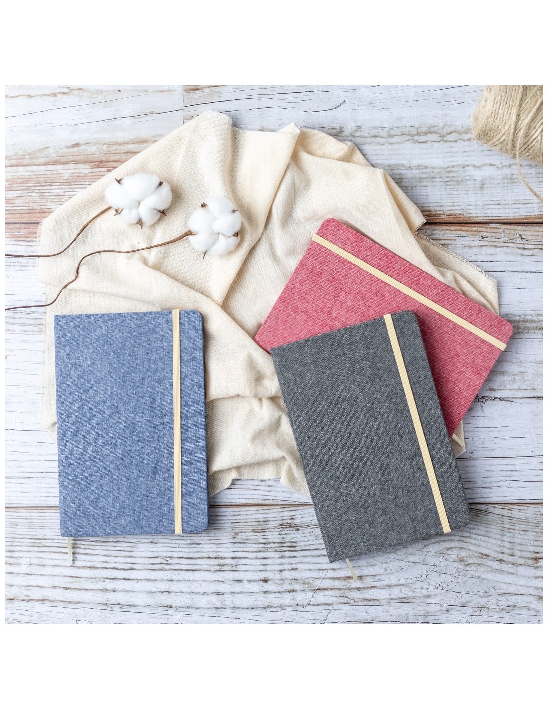 Bloc de notas de línea nature fabricado en 100% algodón reciclado. Con tapas duras y elástico de sujeción en contraste. Interior con 100 hojas lisas y marcapáginas de tela. Disponible en amplia gama de colores, con distintivo algodón reciclado en la contraportada. Certificación GRS (Global Recycled Standard / Estándar de Reciclaje Global), que garantiza el origen reciclado del material usado para fabricar el producto