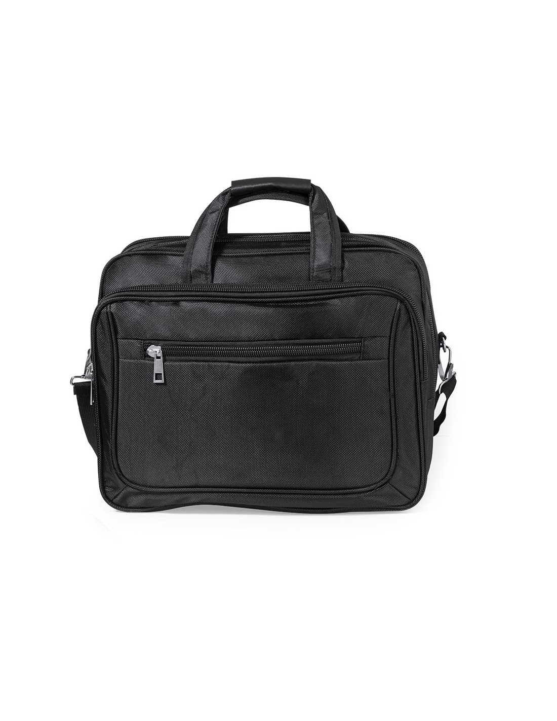 Maletín de alta calidad con cierre de cremallera a juego y en suave y resistente poliéster 1680D de elegantes acabado en color negro. Con 5 bolsillos exteriores con cierre de cremallera y tiradores de alta calidad, compartimento interior acolchado para po