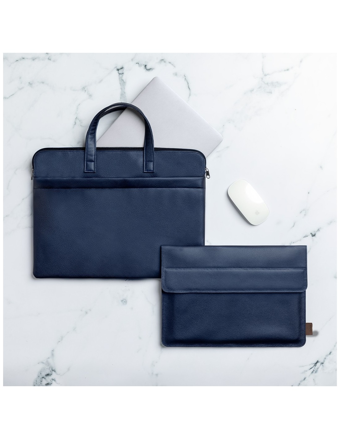 Resistente funda para ordenador portátil de calidad premium, fabricada en cuero reciclado. Compartimento principal con cierre de solapa e interior acolchado. Para ordenador portátil o tablet de hasta 14 pulgadas. Etiqueta exterior con distintivo cuero reciclado. El cuero reciclado rescata las fibras desechadas en los procesos de fabricación del cuero, minimizando el desperdicio de material, contribuyendo a reducir el impacto ambiental y manteniendo a la vez sus propiedades originales.