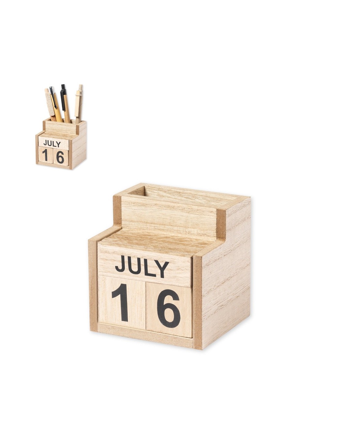 Lapicero calendario perpetuo de línea nature: ya no es necesario cambiar de calendario cada año, con el beneficio al medio ambiente que esto supone. Fabricado en MDF, con tipografía de fácil lectura. Presentado en caja individual de diseño kraft.