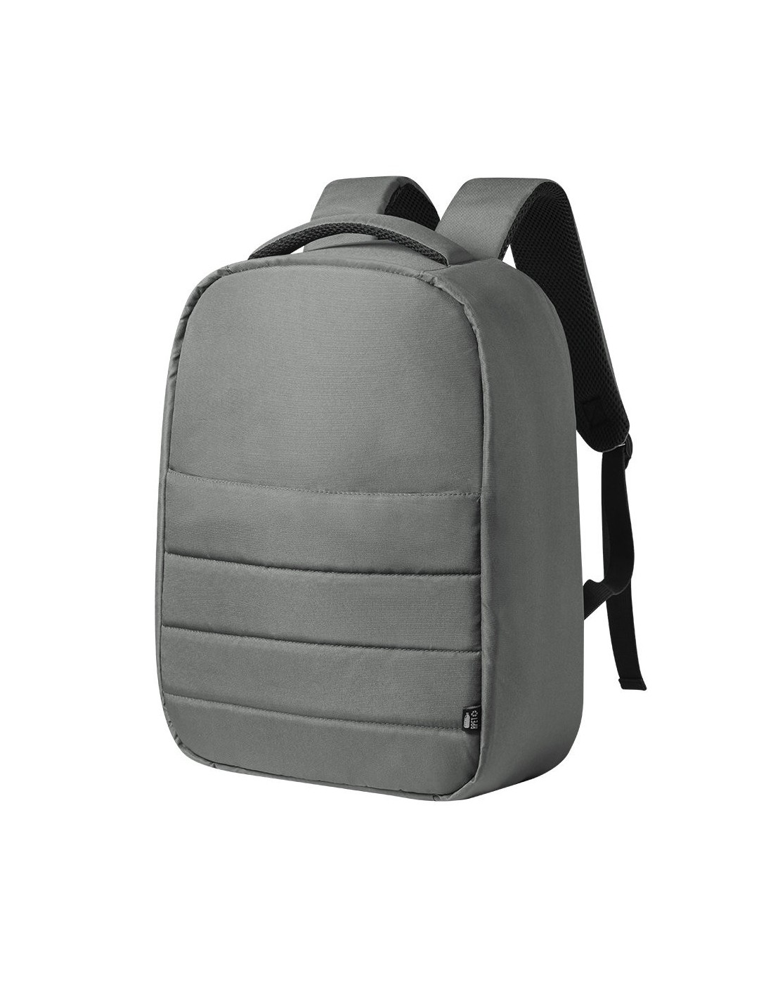 Mochila antirrobo de línea nature con diseño urbano y acolchado total. Fabricada en resistente RPET 300D elaborado a partir de plástico reciclado, para así fomentar la reutilización de residuos plásticos y contribuir a la sostenibilidad del planeta. Con bolsillo antirrobo y accesorio para ajuste en trolley. Compartimentos interiores acolchados para ordenador portátil de hasta 15 pulgadas y tablets de hasta 12 pulgadas. Cintas de hombros y espalda acolchadas. Distintivo RPET en etiqueta.