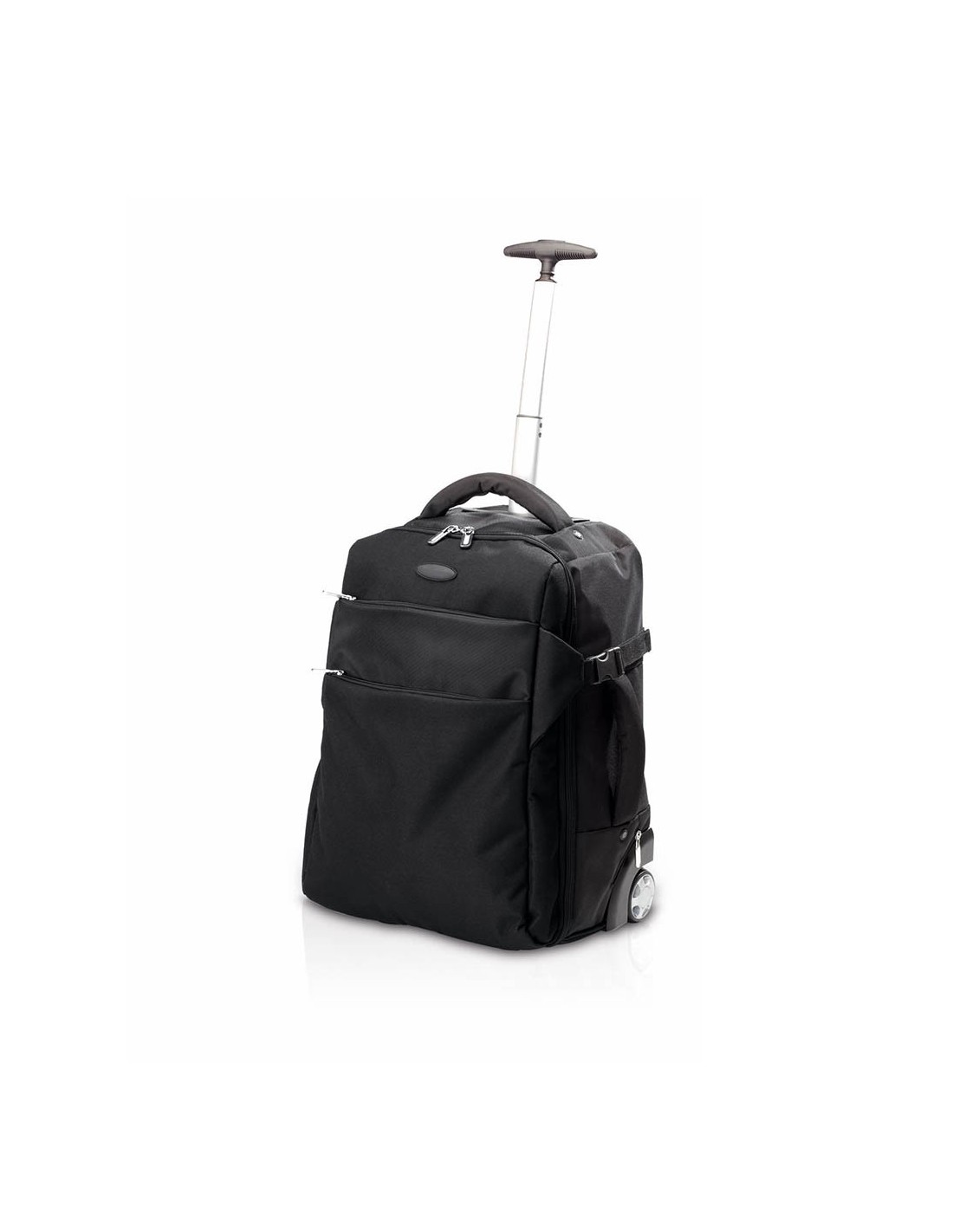Trolley de 2 ruedas en poliéster 1680D de alta calidad. Con asa exterior reforzada a juego y prácticos bolsillos en parte frontal. Con cremalleras a juego, además incluye cintas para hombro acolchadas y ocultas en parte posterior para usar como mochila, c