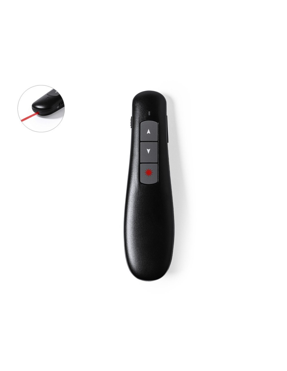 Puntero láser inalámbrico para presentaciones. De diseño ergonómico, incluye accesorio plug and play para conectarlo al puerto USB del ordenador, sin necesidad de instalar software adicional para su correcto funcionamiento. Compatible con multitud de sistemas operativos (Windows, OS X, Linux y Android). Con botones avance/ pausa/ retroceso/volumen y alimentación a pilas: 2xAAA incluidas. Presentado en elegante y resistente estuche de cartón negro, con funda e interior troquelado en espuma. Manual de instrucciones en español e inglés.