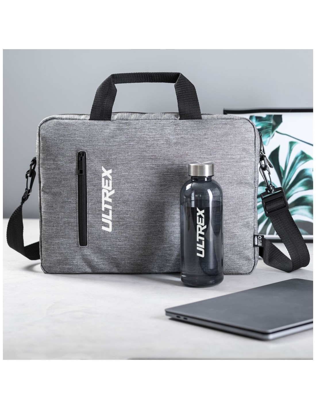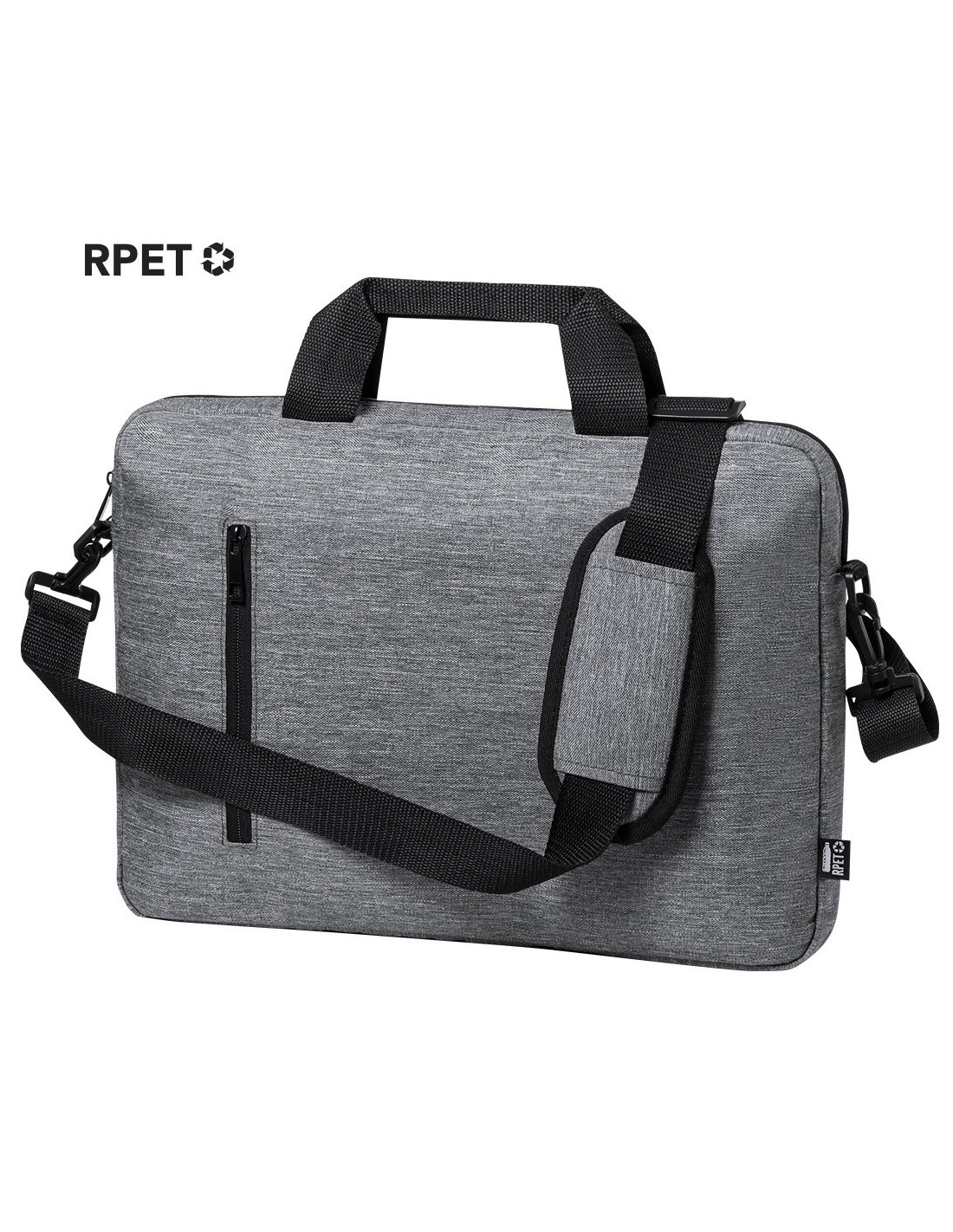 Elegante portadocumentos de línea nature en resistente 600D RPET efecto melange, elaborado a partir de plástico reciclado para así fomentar la reutilización de residuos plásticos y contribuir a la sostenibilidad del planeta. Detalles en negro, incluye compartimentos interiores acolchados para ordenador de hasta 15 pulgadas y tablet de hasta 10 pulgadas. Accesorio en parte posterior para anclaje al trolley, bolsillo exterior con cierre de cremallera, cómodas asas reforzadas, cinta bandolera ajustable con cierre de mosquetón y almohadilla para hombro a juego. Distintivo RPET en etiqueta exterior.