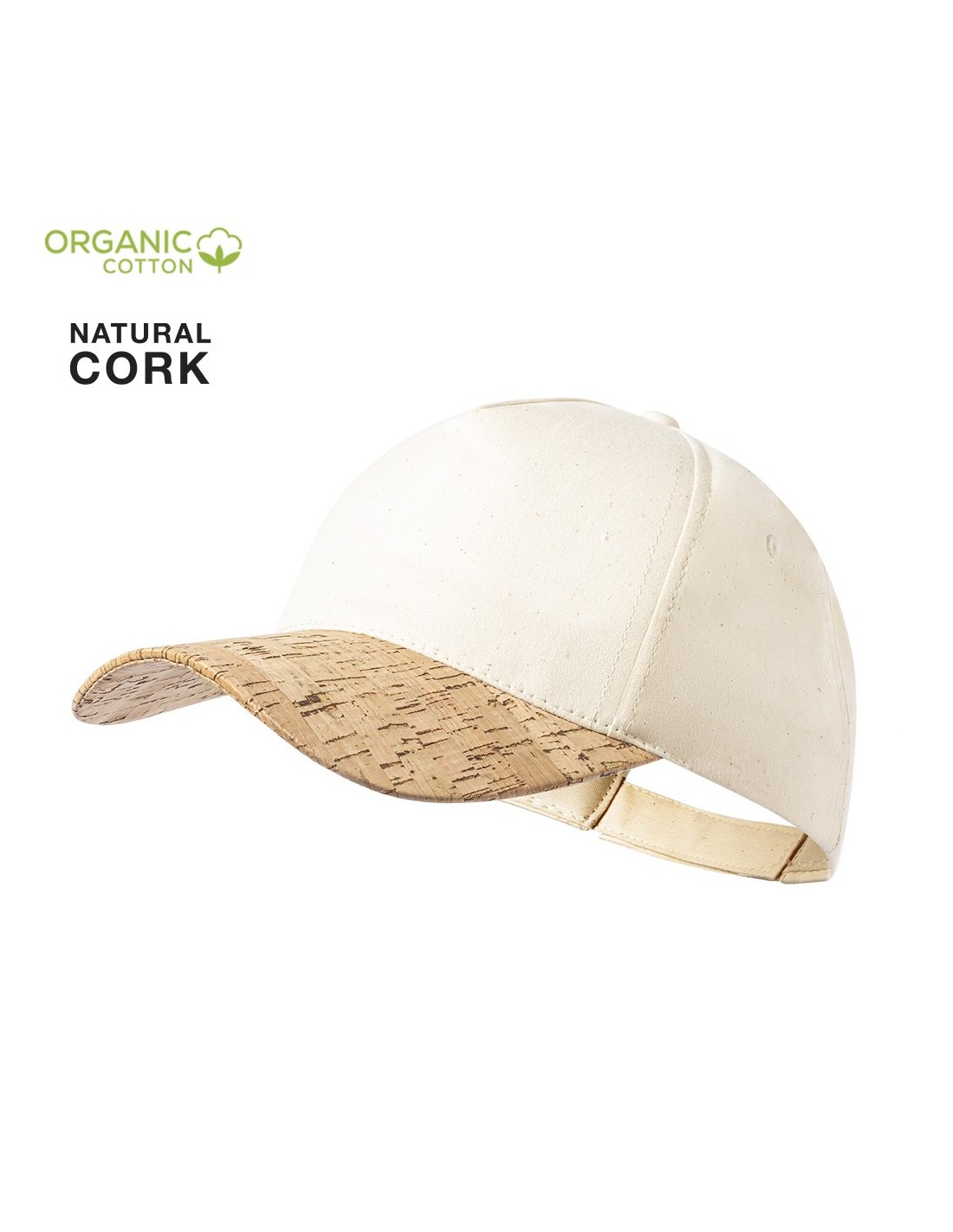 Gorra de línea nature de 5 paneles fabricada algodón orgánico, con visera en corcho natural. Con certificación GOTS (Global Organic Textile Standard, ó Norma Mundial de Textiles Orgánicos) que garantiza que los tejidos están hechos de fibras orgánicas. Con cierre ajustable de velcro.
