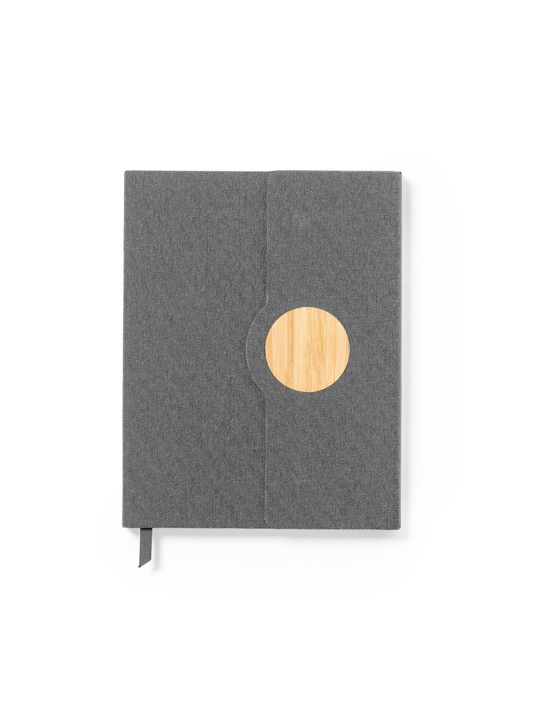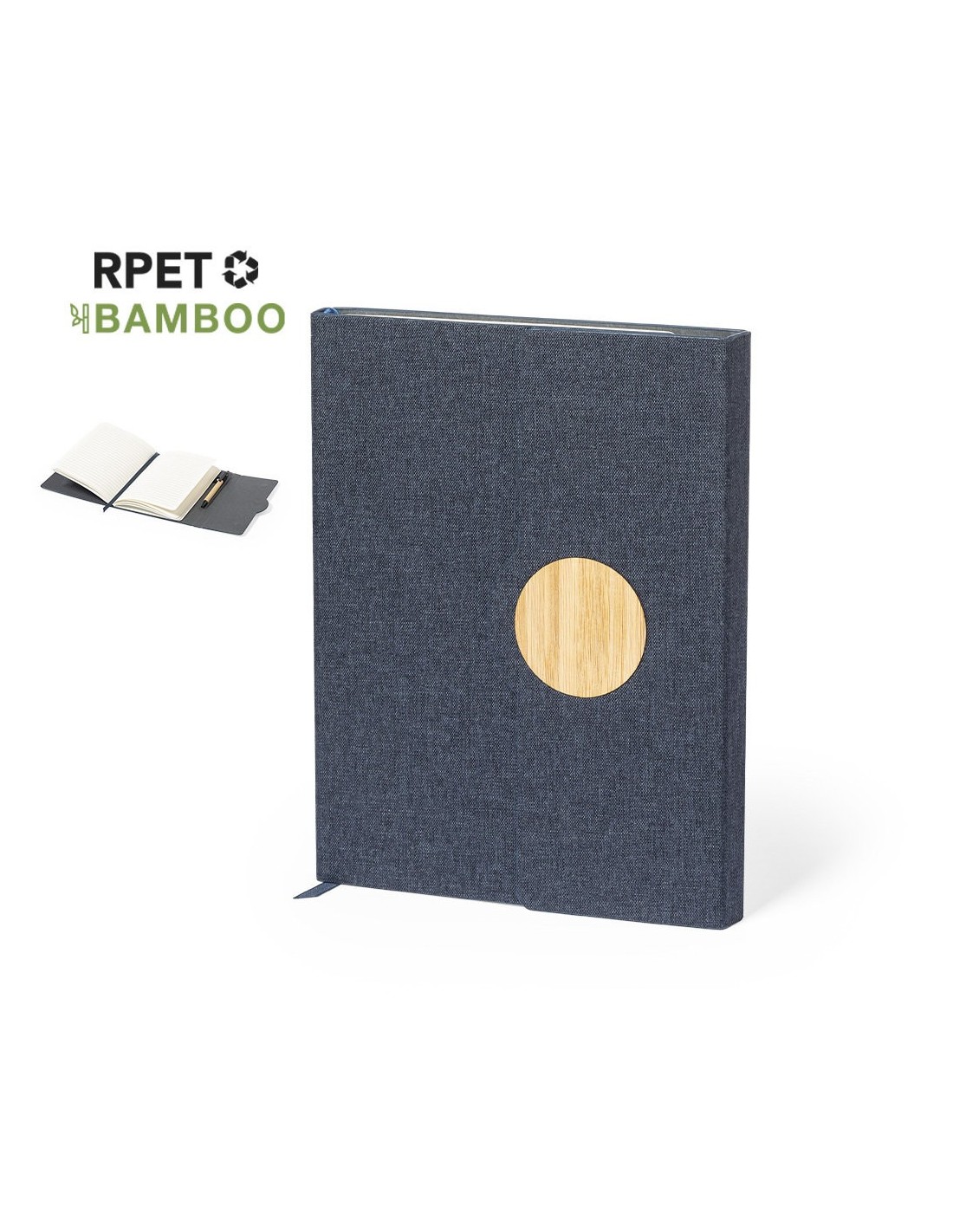 Bloc de notas desplegable de línea nature fabricado en poliéster 300D RPET. Con tapas duras y detalle en bambú en la portada. Interior desplegable con 80 hojas de disposición a una raya, marcapáginas de tela a juego y soporte para bolígrafo (bolígrafo no incluido). Disponible en variada gama de colores, con distintivo RPET en la contraportada. El material RPET se elabora a partir de plástico reciclado, para así fomentar la reutilización de residuos plásticos y ayudar a la sostenibilidad del planeta.