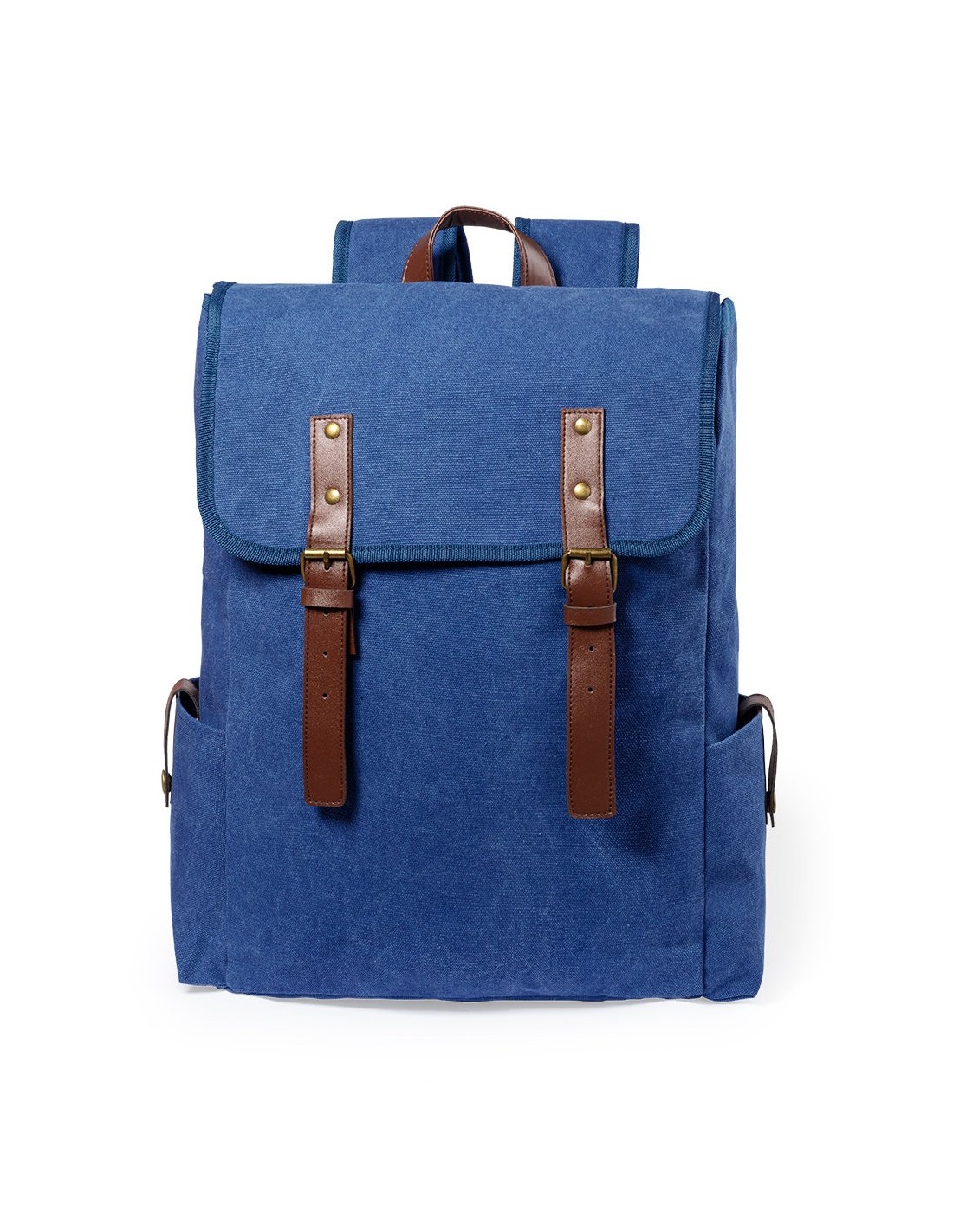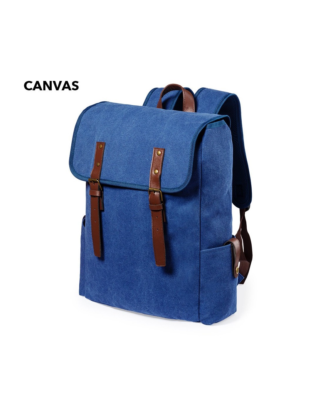 Mochila de diseño atemporal, fabricada en resistente canvas de 480g/m2, con cintas de cierre y asa de transporte en polipiel. Interior acolchado con compartimentos independientes para tablet de hasta 10 pulgadas y ordenador portátil de hasta 15 pulgadas. Con prácticos bolsillos laterales en el exterior, espalda acolchada y cintas para hombros ajustables y acolchadas.