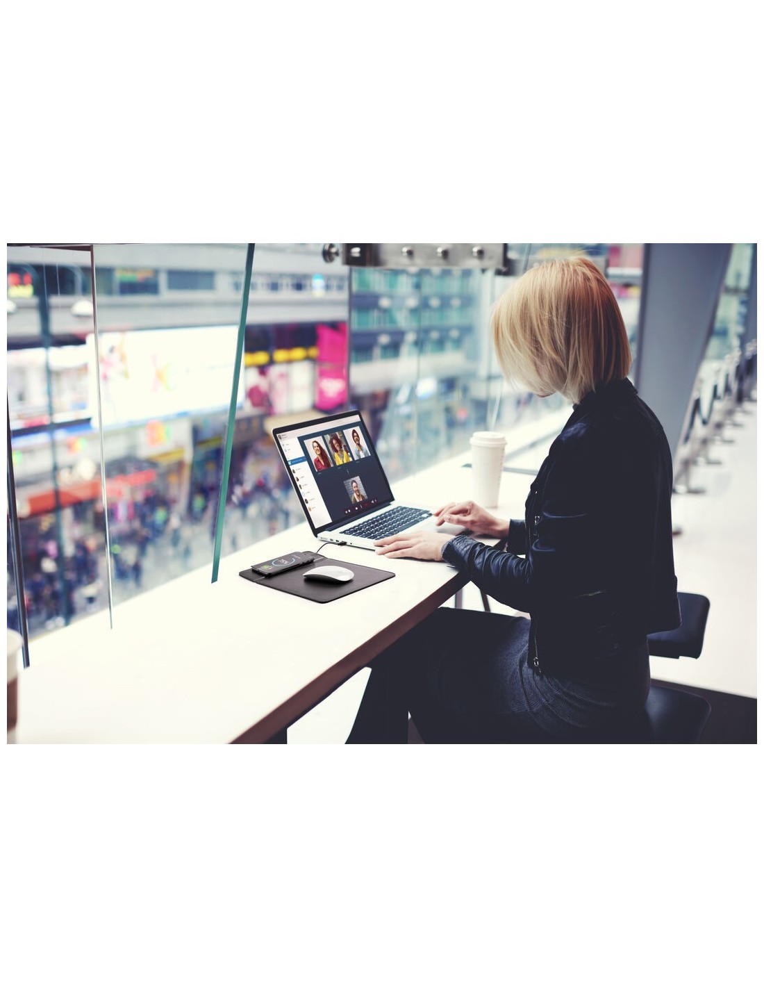 Alfombrilla de polipiel con cargador inalámbrico integrado y capacidad de carga de 1.000 mA -cable micro USB incluido- Con base antideslizante y soporte para móvil integrado. Compatible con dispositivos equipados con tecnología de carga inalámbrica y presentada en atractiva caja de diseño.