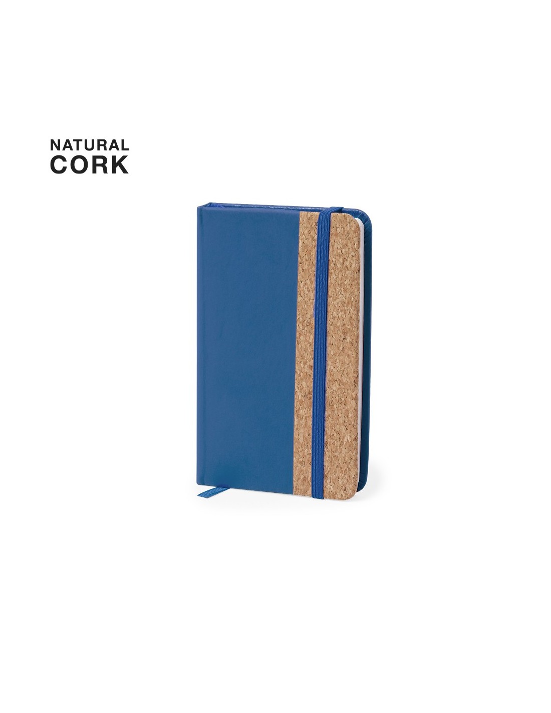 Bloc de notas con tapas rígidas elaboradas con suave corcho. Incluye 80 hojas lisas con elástico de sujeción y marcapáginas de tela a juego. Disponible en amplia gama de colores, con tacto exterior en combinación de corcho natural y polipiel. Presentado en bolsa individual. .Elaborado con elementos vegetales para así fomentar la utilización de materias primas naturales y reducir las emisiones contaminantes.