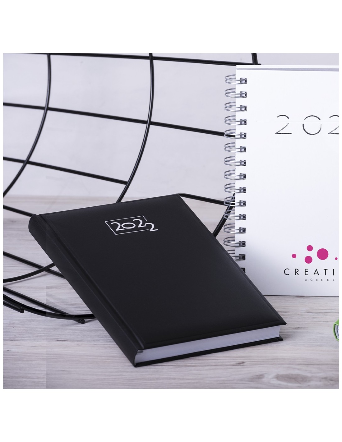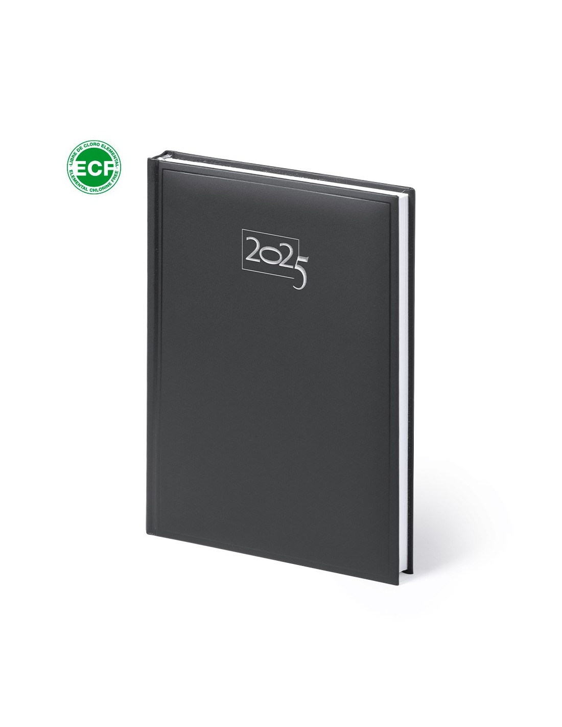 Agenda de tamaño A5 acabada en resistente y suave polipiel con acolchado y de variados colores. Diseño página día con frase del día y marcapáginas de tela. En castellano, inglés, francés, italiano, portugués, gallego, euskera y catalán.