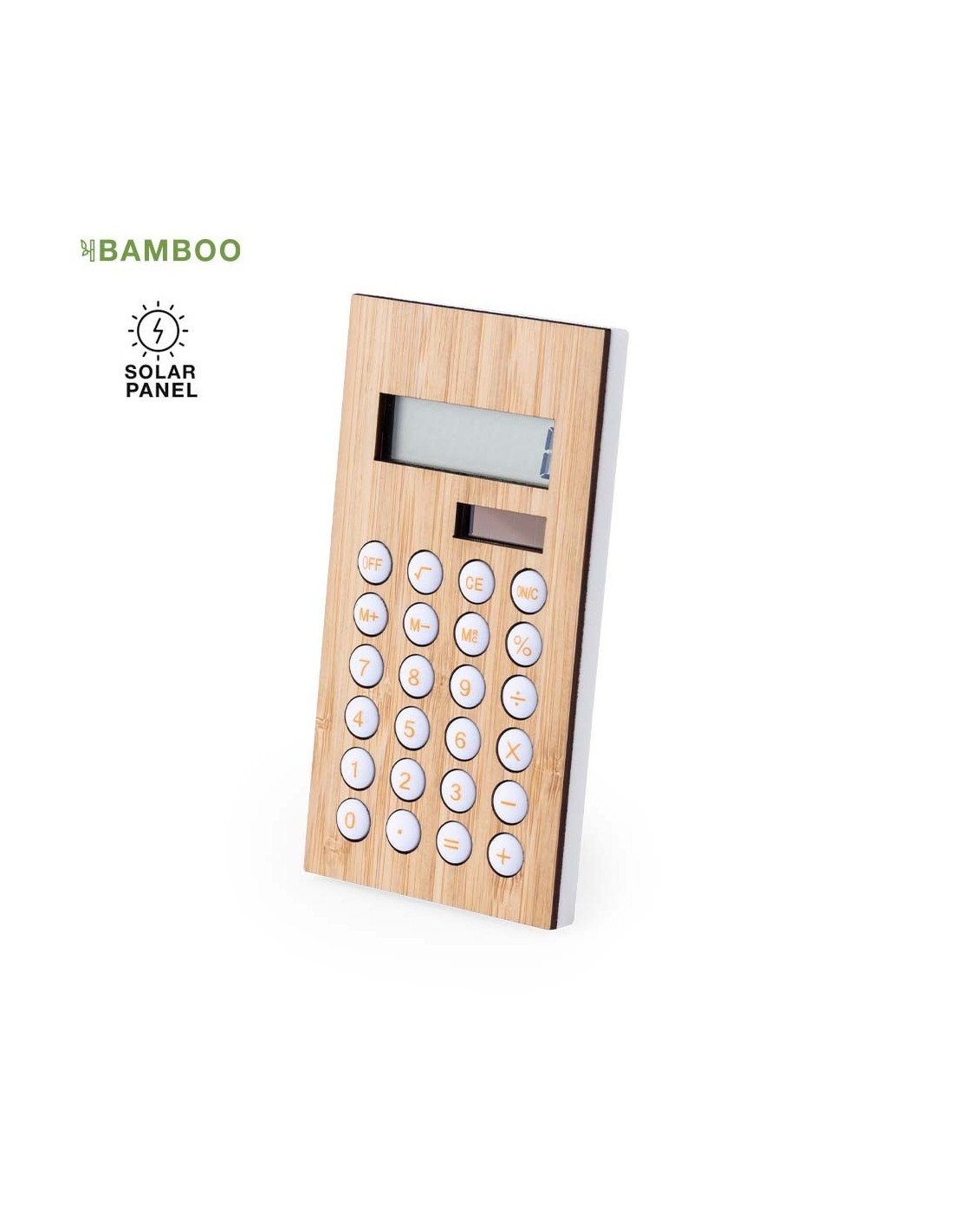 Calculadora de 8 dígitos fabricada en bambú. Funciona con energía solar, con alimentación auxiliar a pilas (de botón incluida). Mecanismo de apagado automático y suaves teclas de silicona. Presentada en atractiva caja de diseño kraft..Materiales como el bambú fomentan la utilización de materias primas naturales, reduciendo las emisiones contaminantes. Proviene de una planta de gran resistencia y versatilidad, con crecimiento y regeneración rápidos, siendo una excelente alternativa al uso de madera tradicional.