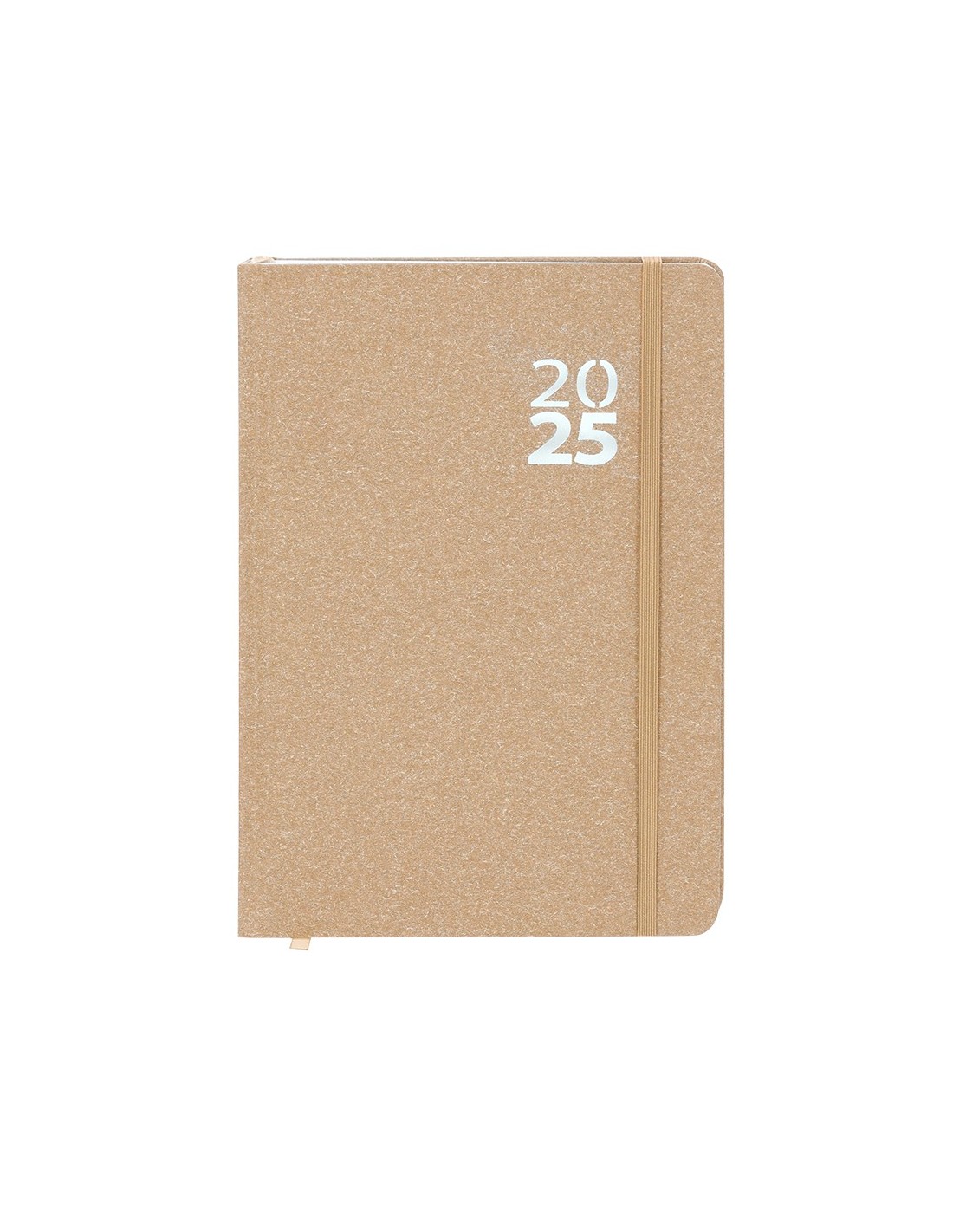 Agenda de tamaño A5 en Cartón Reciclado. Con cubiertas rígidas y elástico de cierre a juego. Incluye caja kraft de presentación. Con distintitivo ECO.Diseño página día, zona de anotaciones y marcapáginas de tela. En 2 idiomas: castellano e inglés. El Cartón Reciclado proviene del reaprovechamiento de excedente de fabricaciones y reciclaje de papel en el final de su vida útil, convirtiéndose en un lienzo ecológico y sostenible.