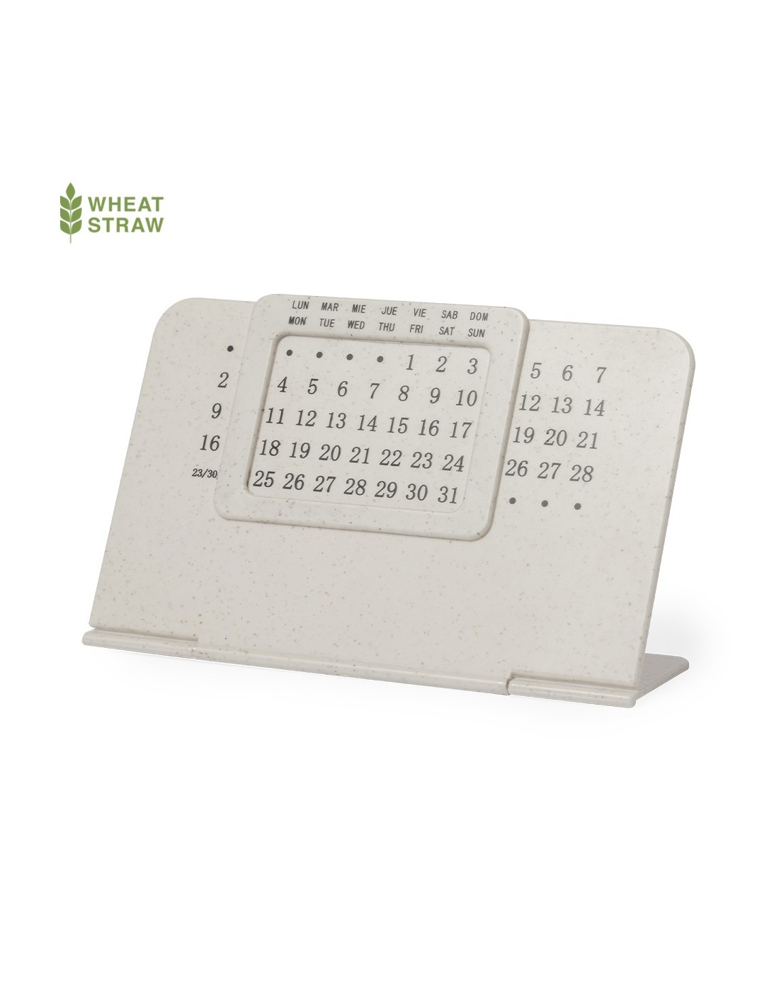 Calendario perpetuo fabricado en caña de trigo. Con soporte plegable.La caña de trigo fomenta la utilización de materias primas naturales, reduciendo así las emisiones contaminantes.
